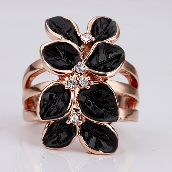 jewerly anillos 18K GP Black leaf party wedding rings girl Jewelry Rings 87 ELY