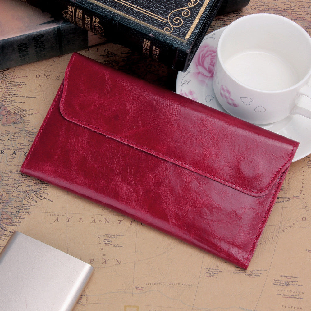 Korean Cow Leather Long Flip Women Wallet Trendy Card Purse Clutch Bag Coin Holder Purse Leather Handbag ELY
