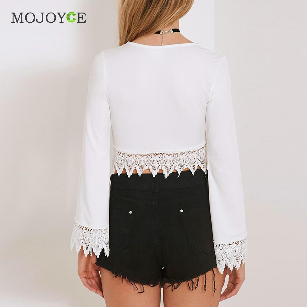 Lace Up White Chiffon Blouse Shirt Women Long Sleeve Casual Cross Chic Women Blouse Blusas Women Tops Blusas y Camisas Mujer ELY