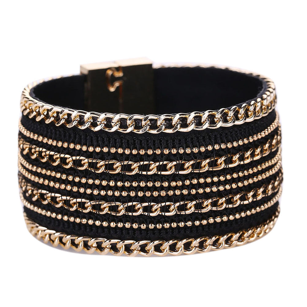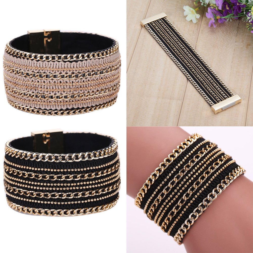 Leather Magnet Buckle Bracelet Multilayer Bohemian Bracelets Jewelry Boho Handmade Bangles 1STL ELY