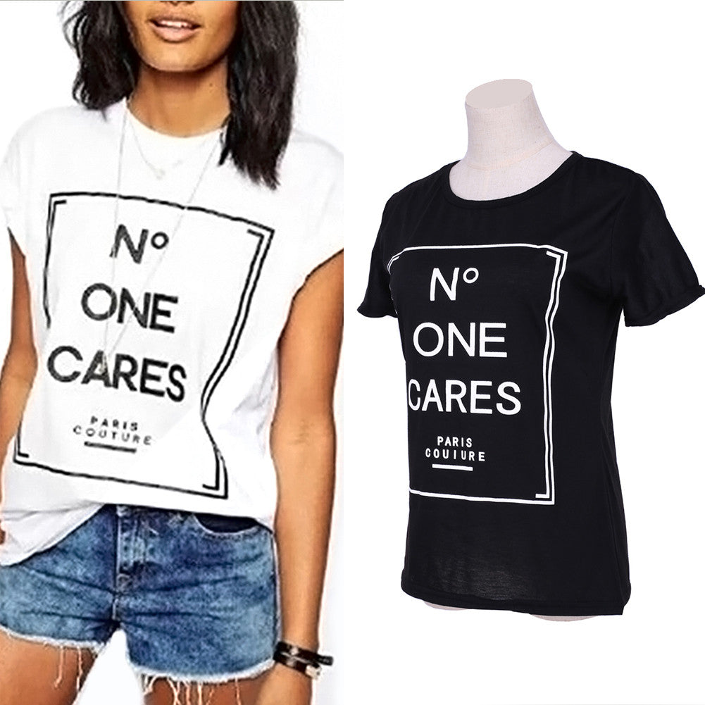 Leisure Letters Printing Women T Shirt Casual O-neck Short Sleeve Tee Tops T shirts Woman Clothes Black White ELY