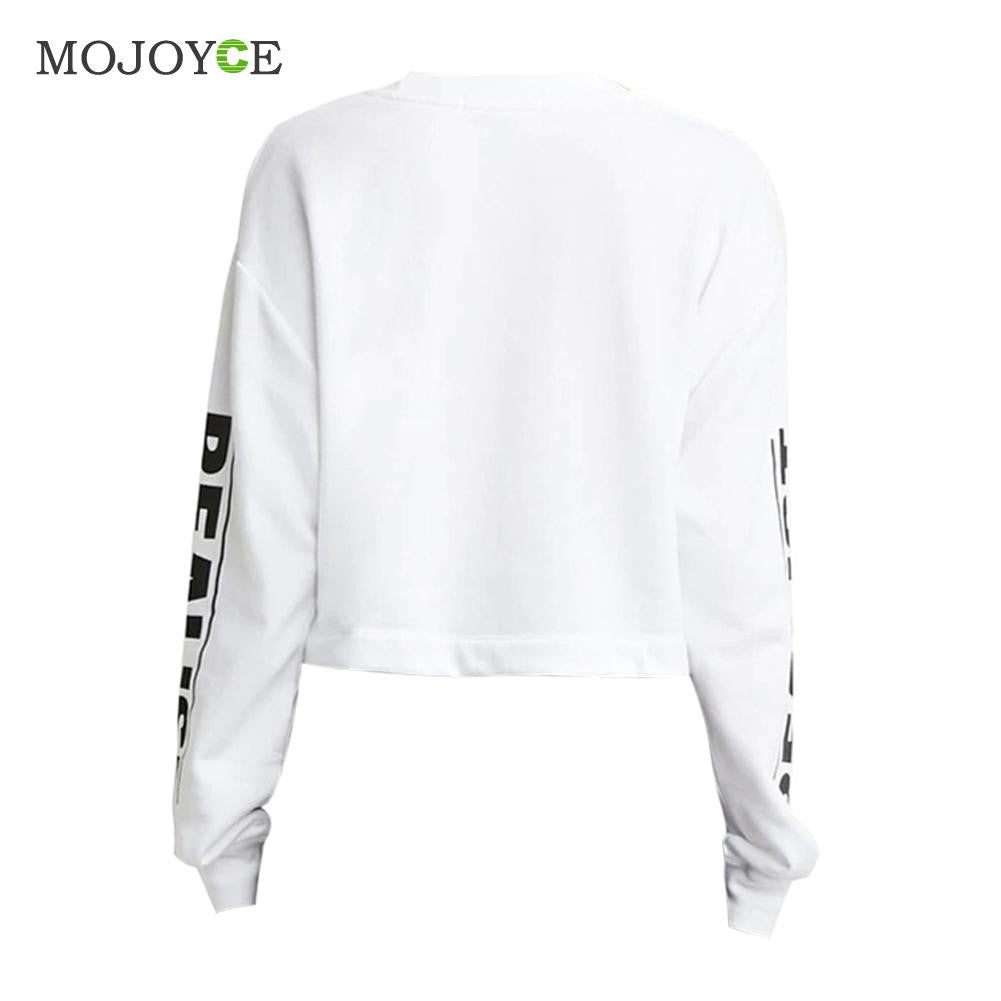 Letter Print Hoodie Women Sexy Knitted O Neck White Pullovers Hoodies Casual White Sweatershirt Women SMLXL ELY