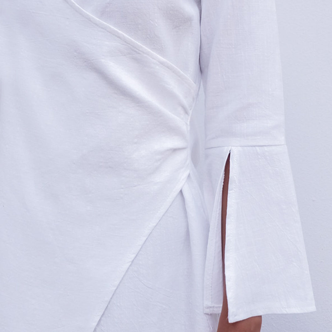 Long Flare Sleeve White Dress Casual Shirt Irregular Split Dresses V-neck Zipper Vestido Women Dress Vestido De Festa ELY