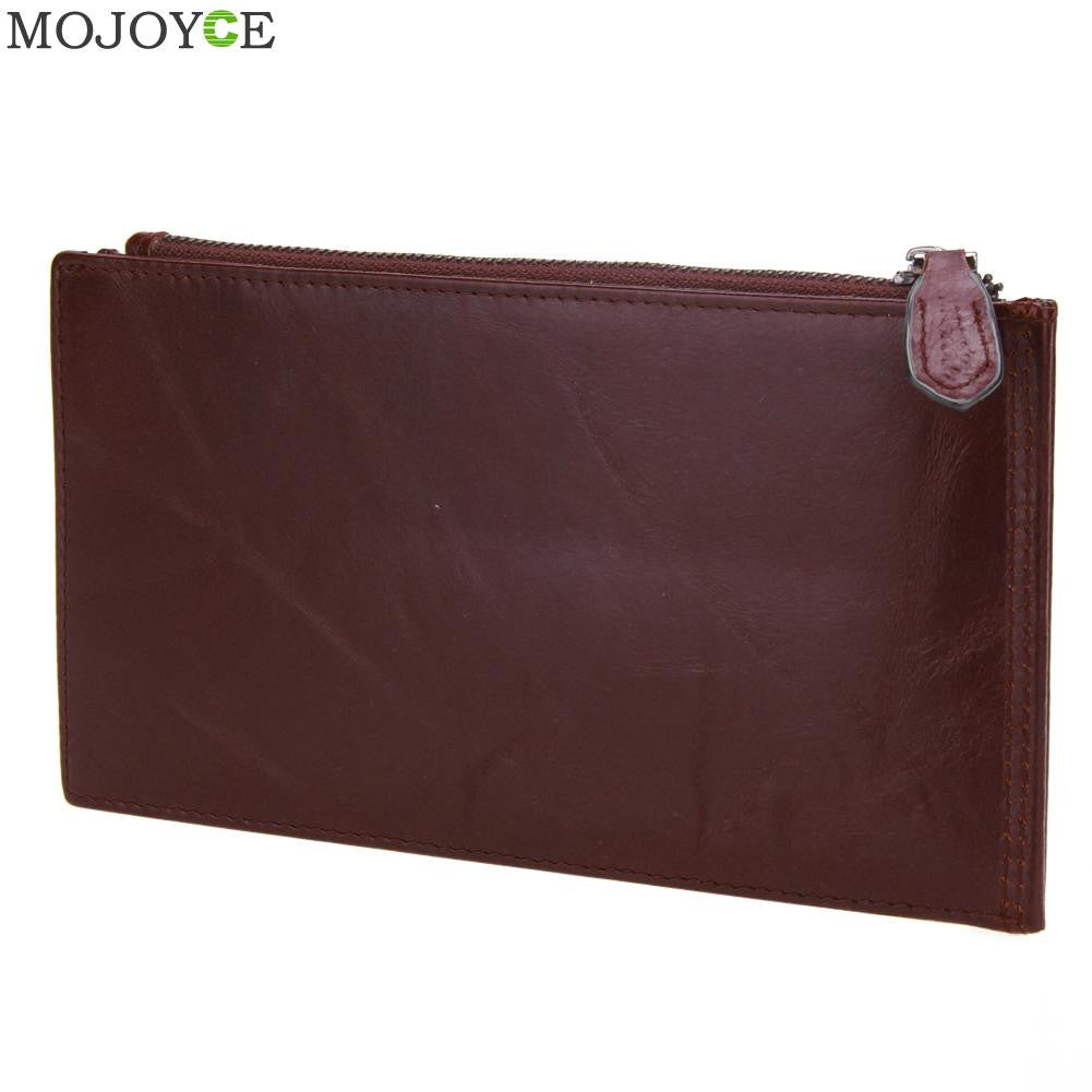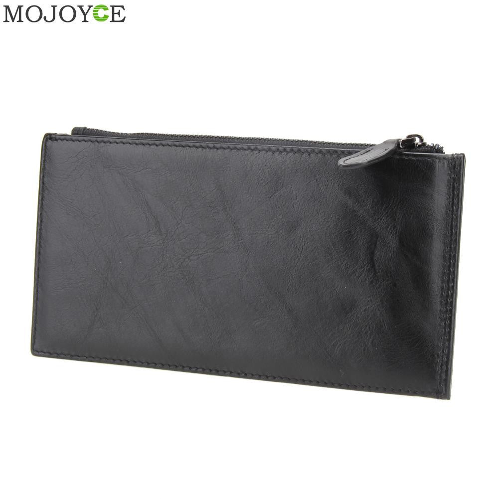 Long Zipper Cow Leather Wallet Purse Detachable Card Slots Pocket Leather Long Slim Men's Wallets Cow Leather Purses ELY