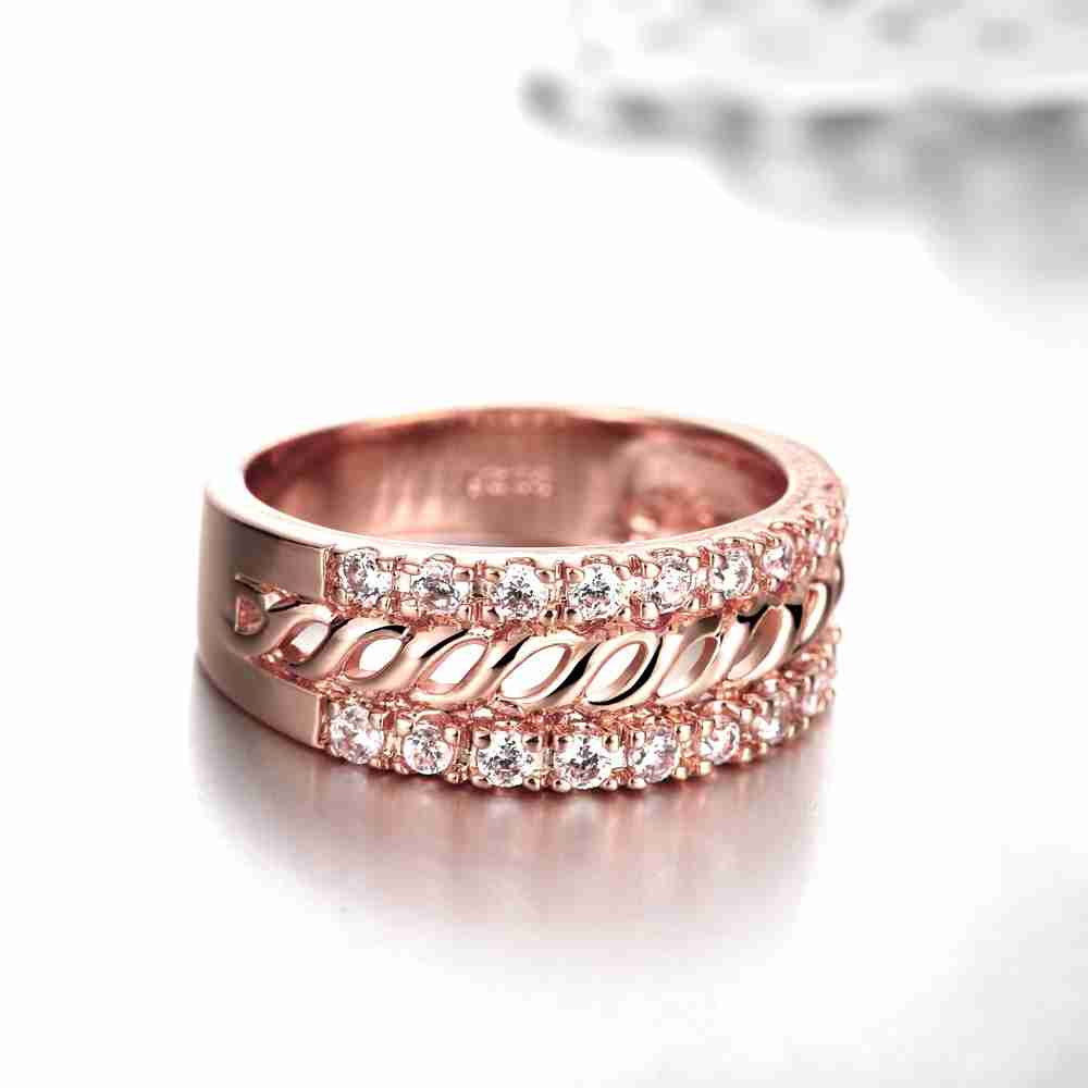 Lovely 18K Gold Plating engagement ring Chain side crystal anillos collier plastron ELY