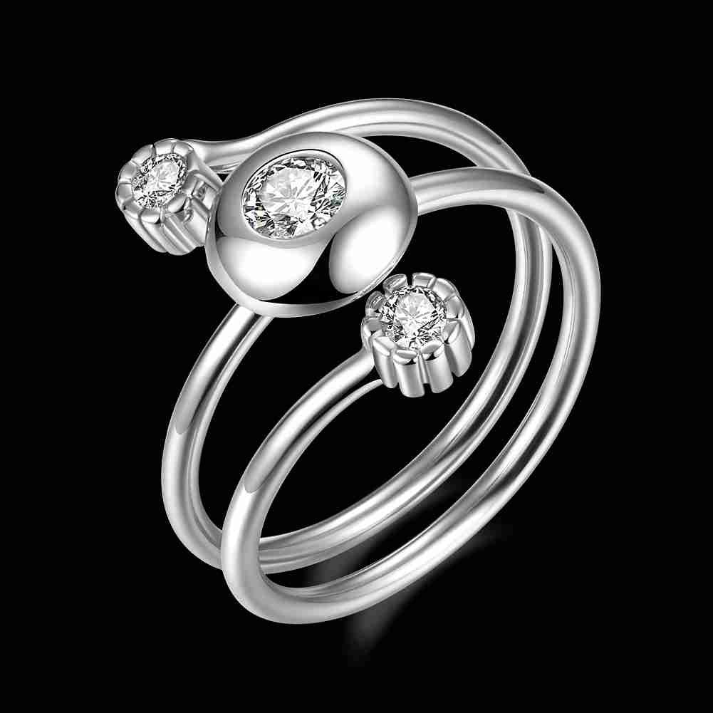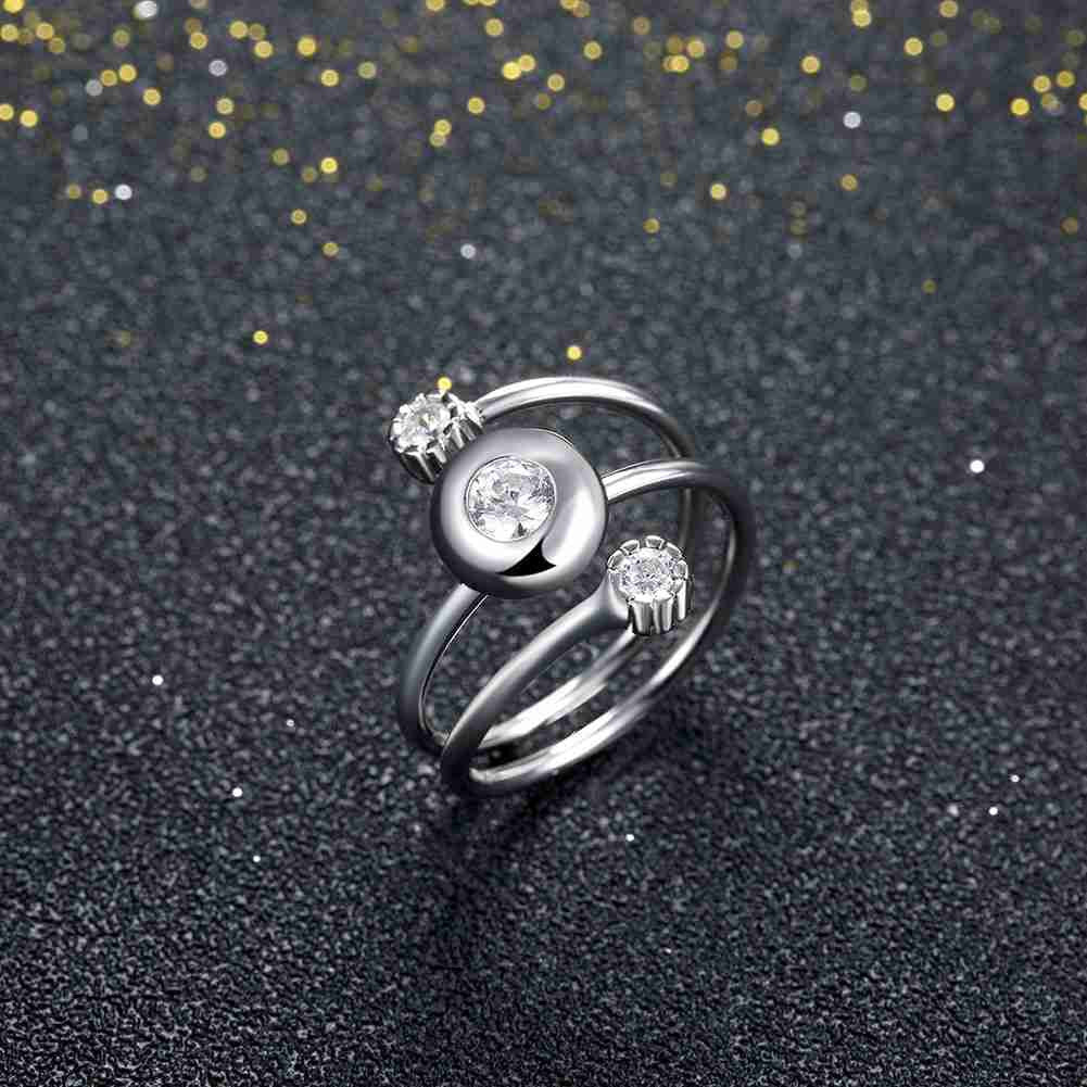 Lovely 925 Sterling Silver wedding ring Three-Stone opening bague femme love142 ELY