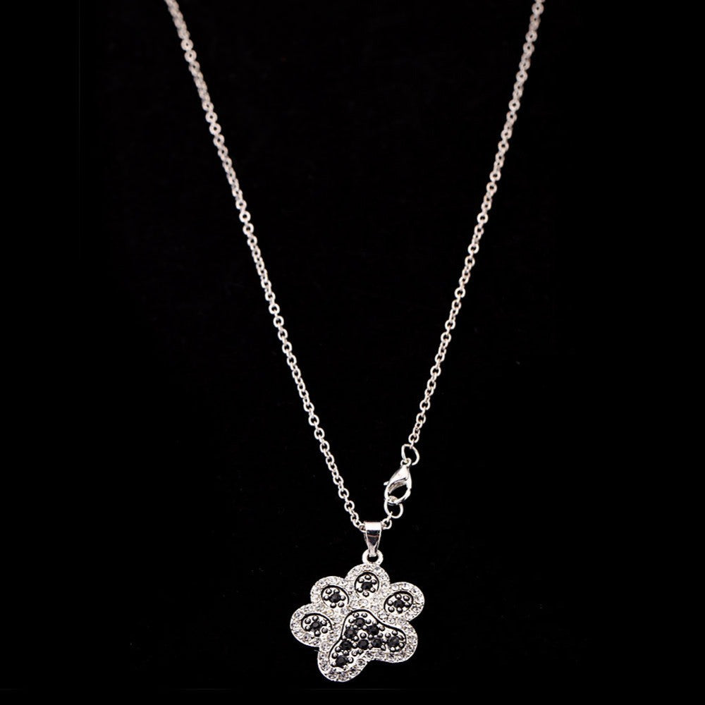 Lovely Dog Paw Prints Pendant Necklace Rhinestone Silver Plate Black White Necklace Women Chain Nacklaces Jewelry ELY