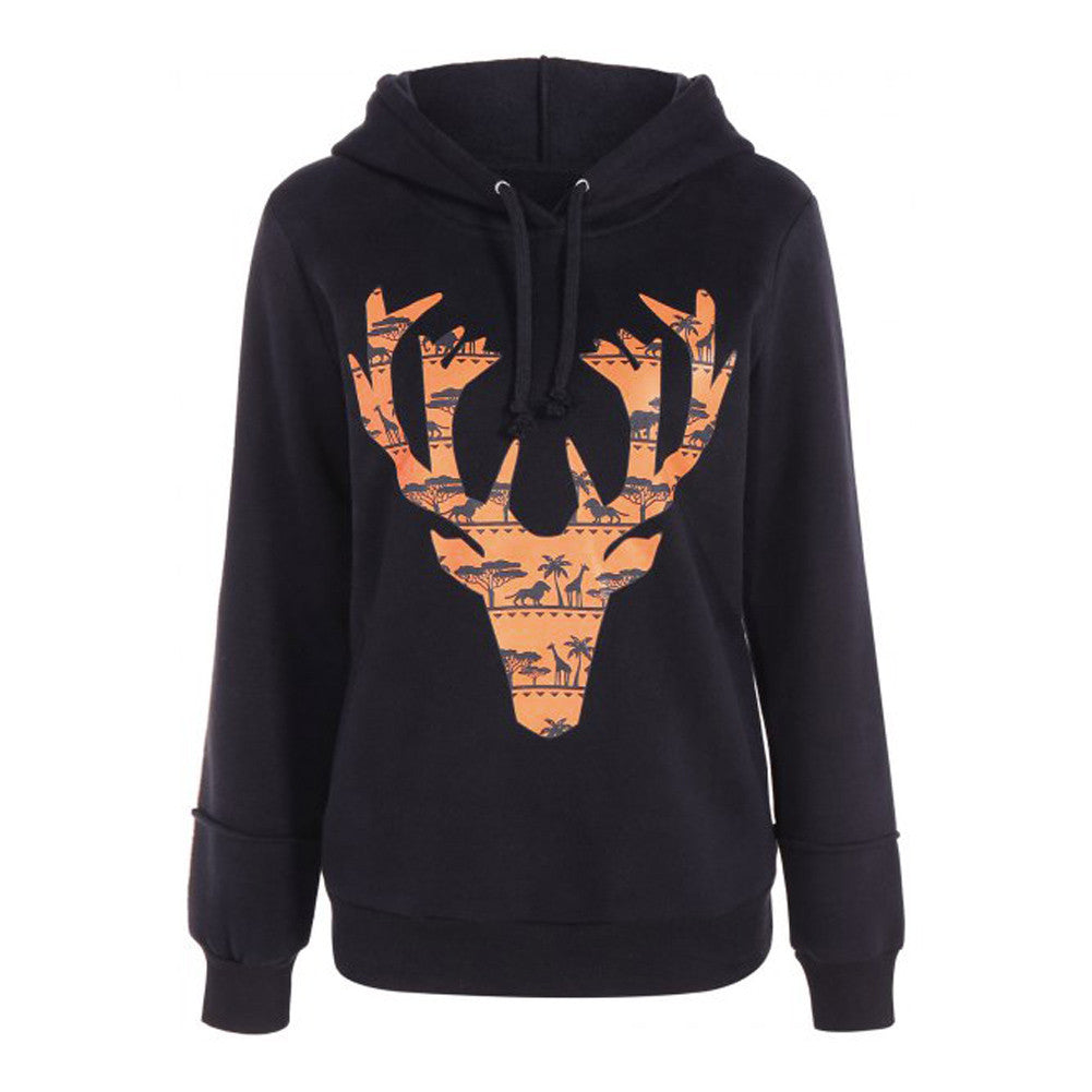 Lovely Elk Hooded Sweatshirt Women Long Sleeve Hoodies Women Fleece Round Neck Sweatshirt Pullover Christmas Cartoon Hoodies ELY