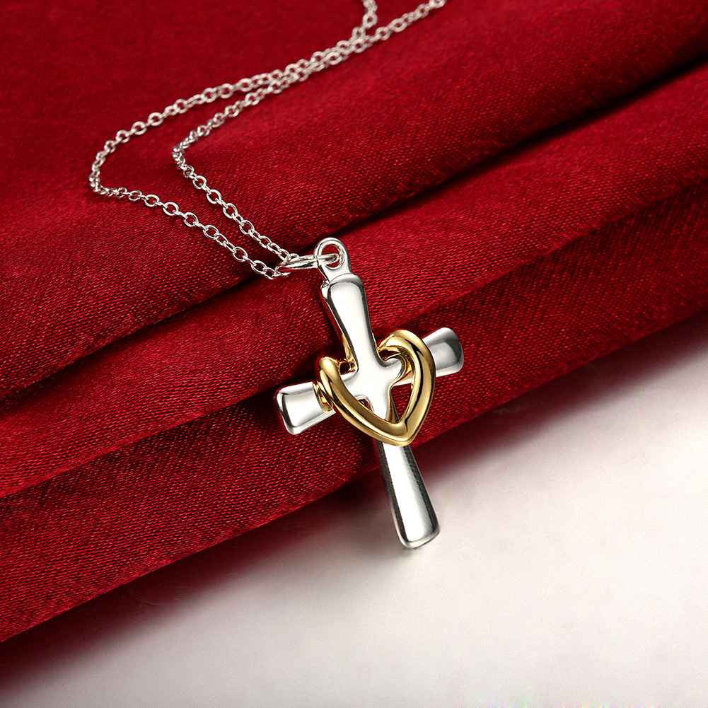 Lovely silver-plated pendant Heart Cross tattoo choker bijoux women ELY