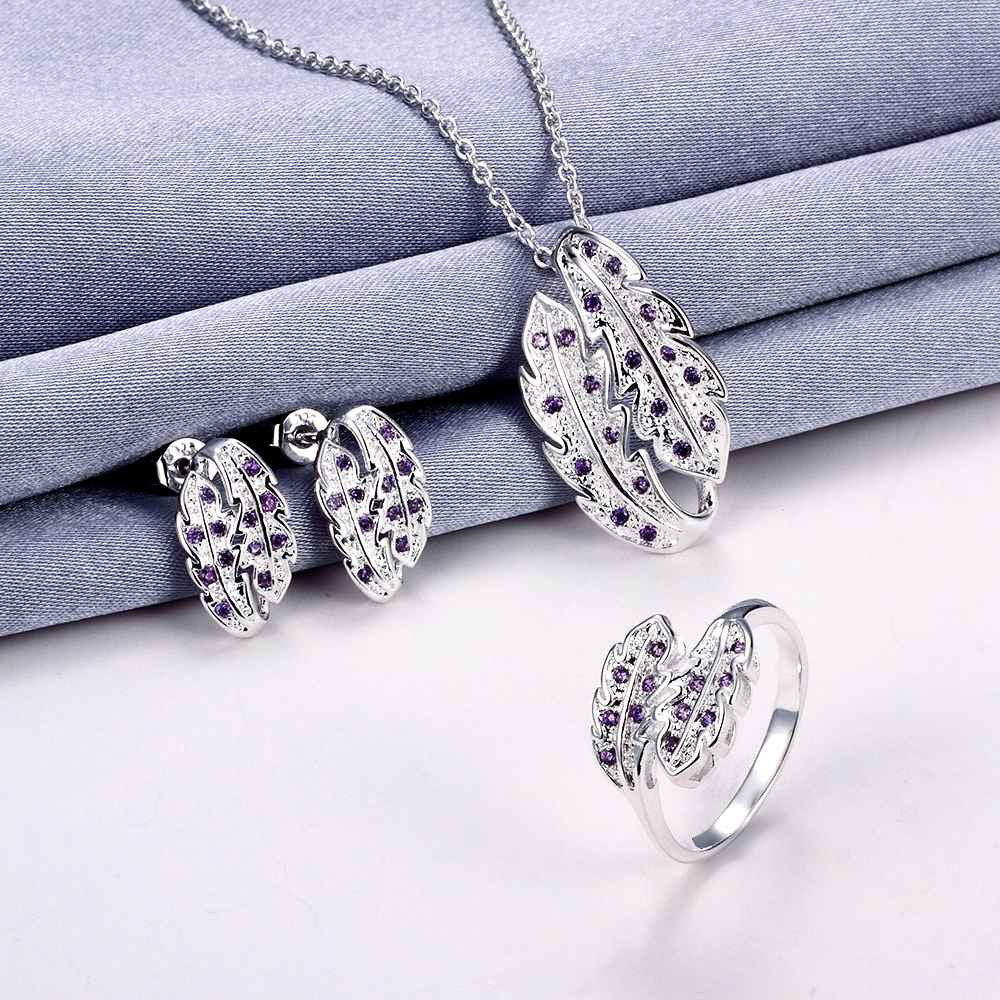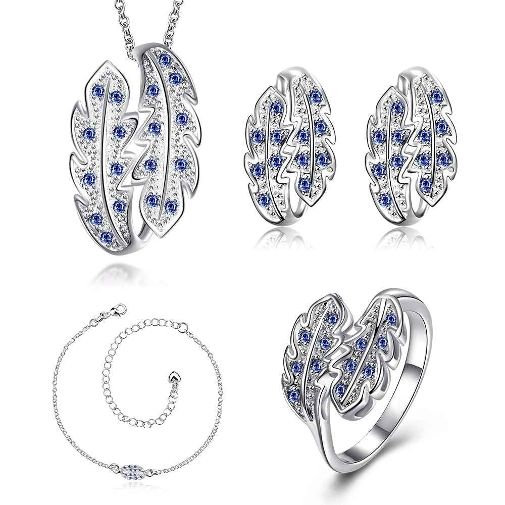 Luxurio silver jewelry set leaf crystal necklace ring earrings Sets diy 18 ELY