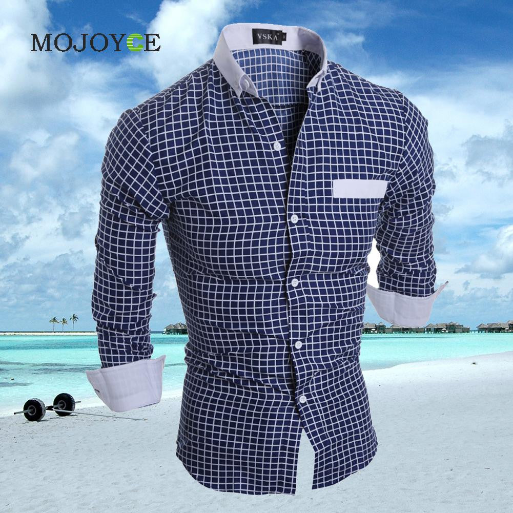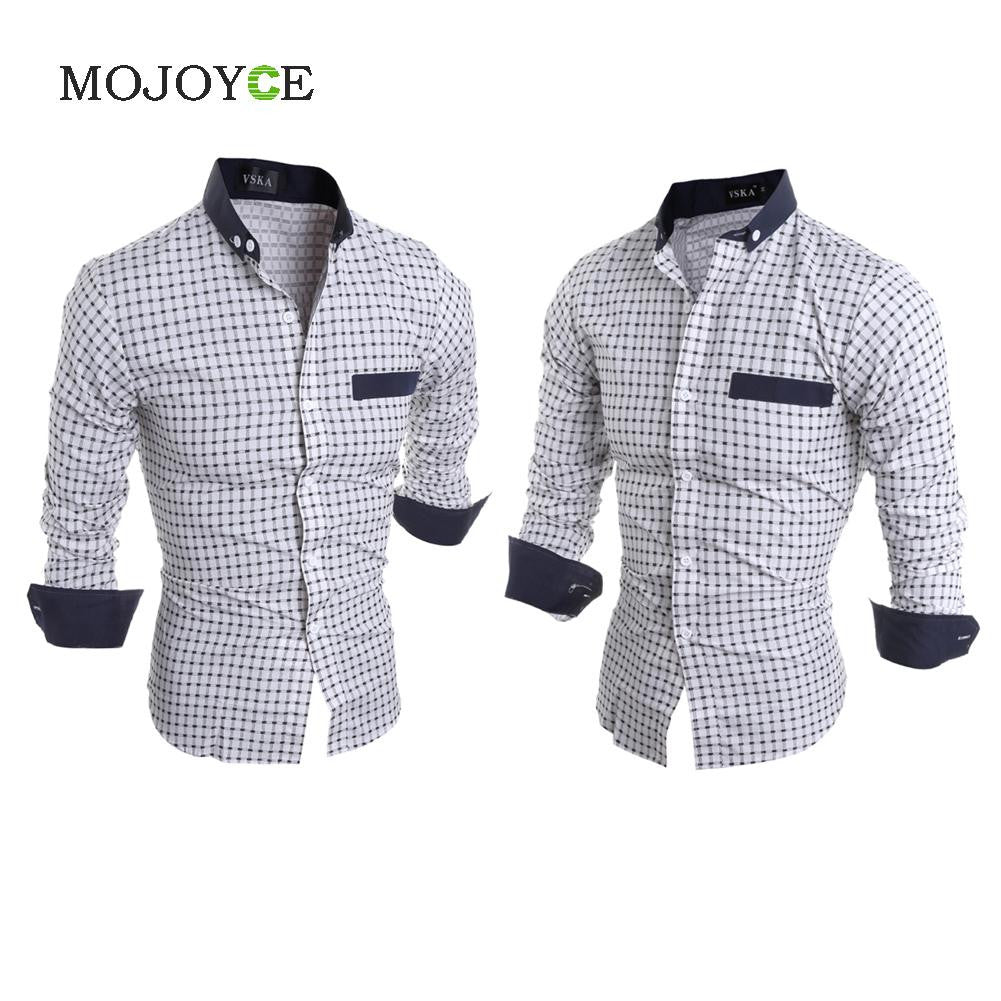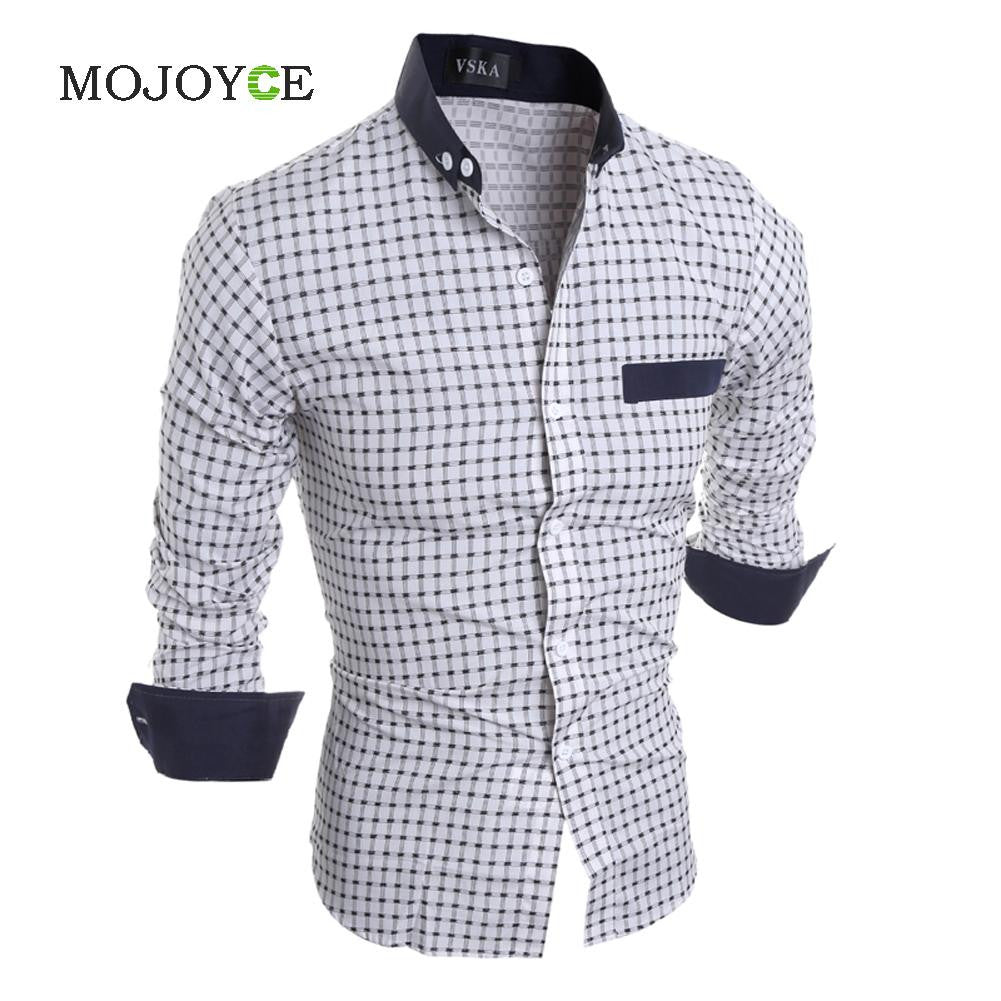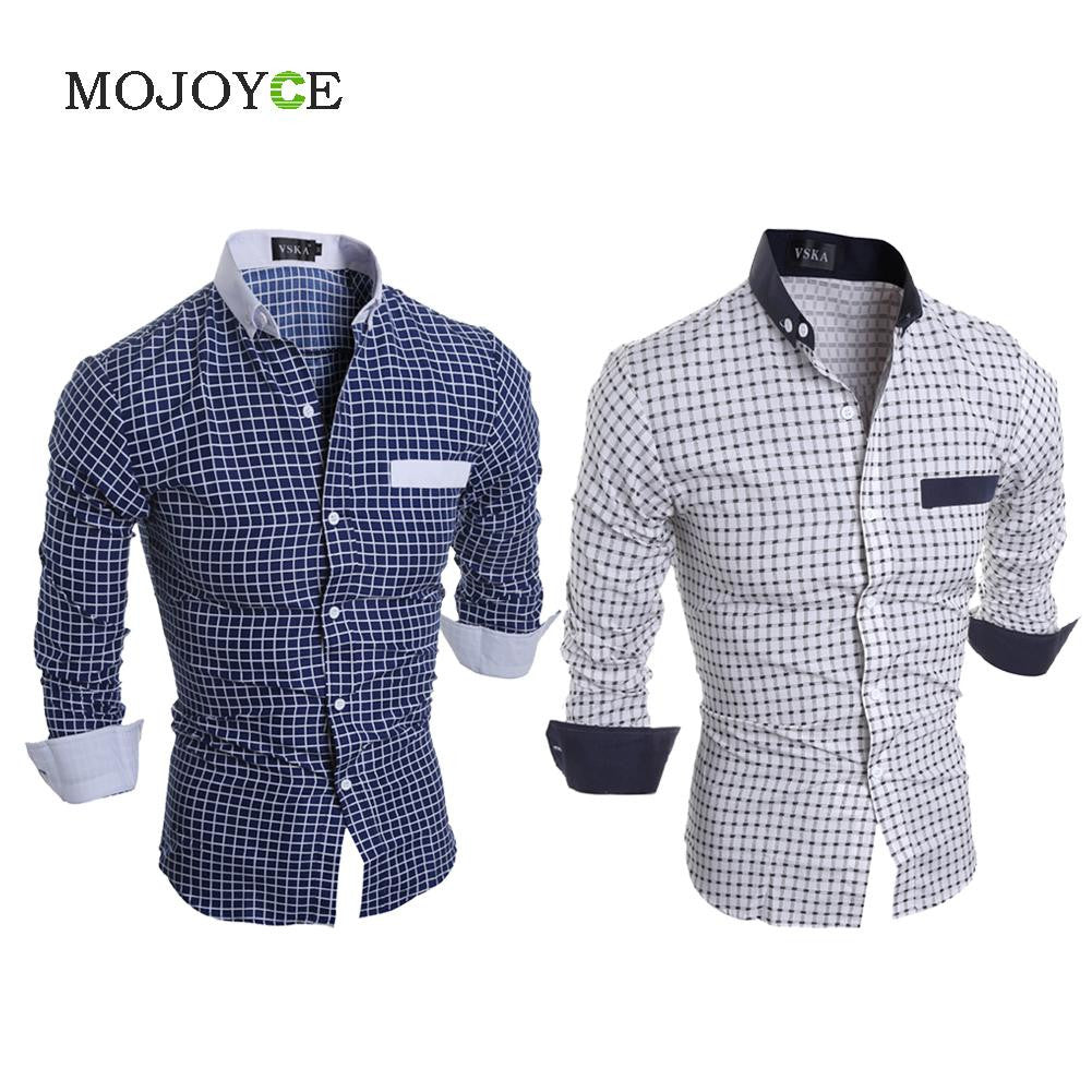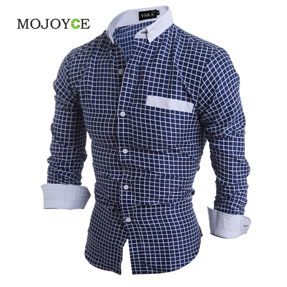 Luxury Mens Stylish Slim Fit Shirts Long Sleeve Formal Dress Shirt Plaid Print Shirts Blusas Brand Clothing Camisas ELY