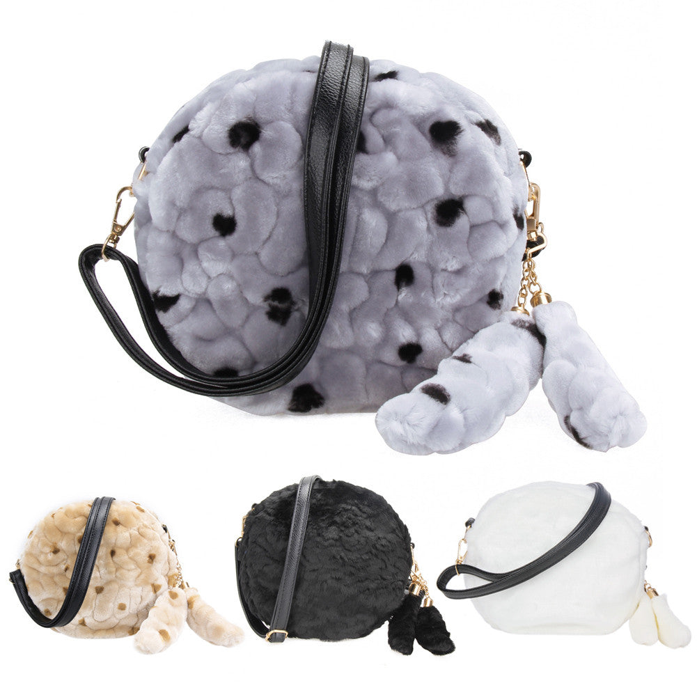 Luxury Women Leather Handbags PU LeatherArtificial Wool Lady Shoulder Crossbody Bag Circular Satchel Sac A Main Bolsa Feminina ELY
