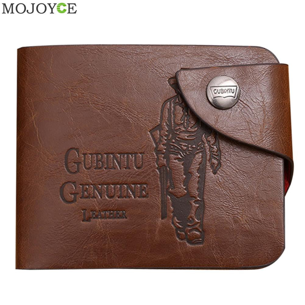 Mens Leather Bifold Wallet Card Holder Slim Coin Purse Brown Short Bifold Slim Purses thin Money Bag Clutch Change Pocket ELY