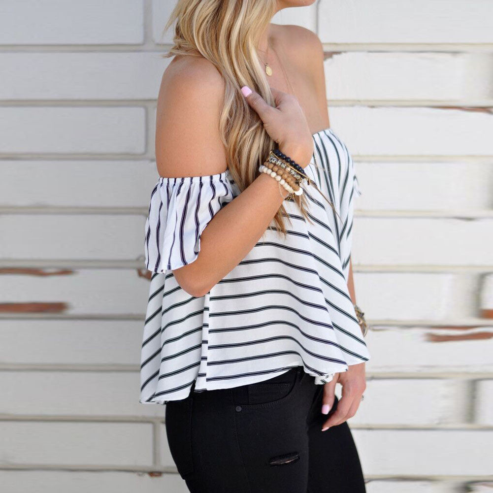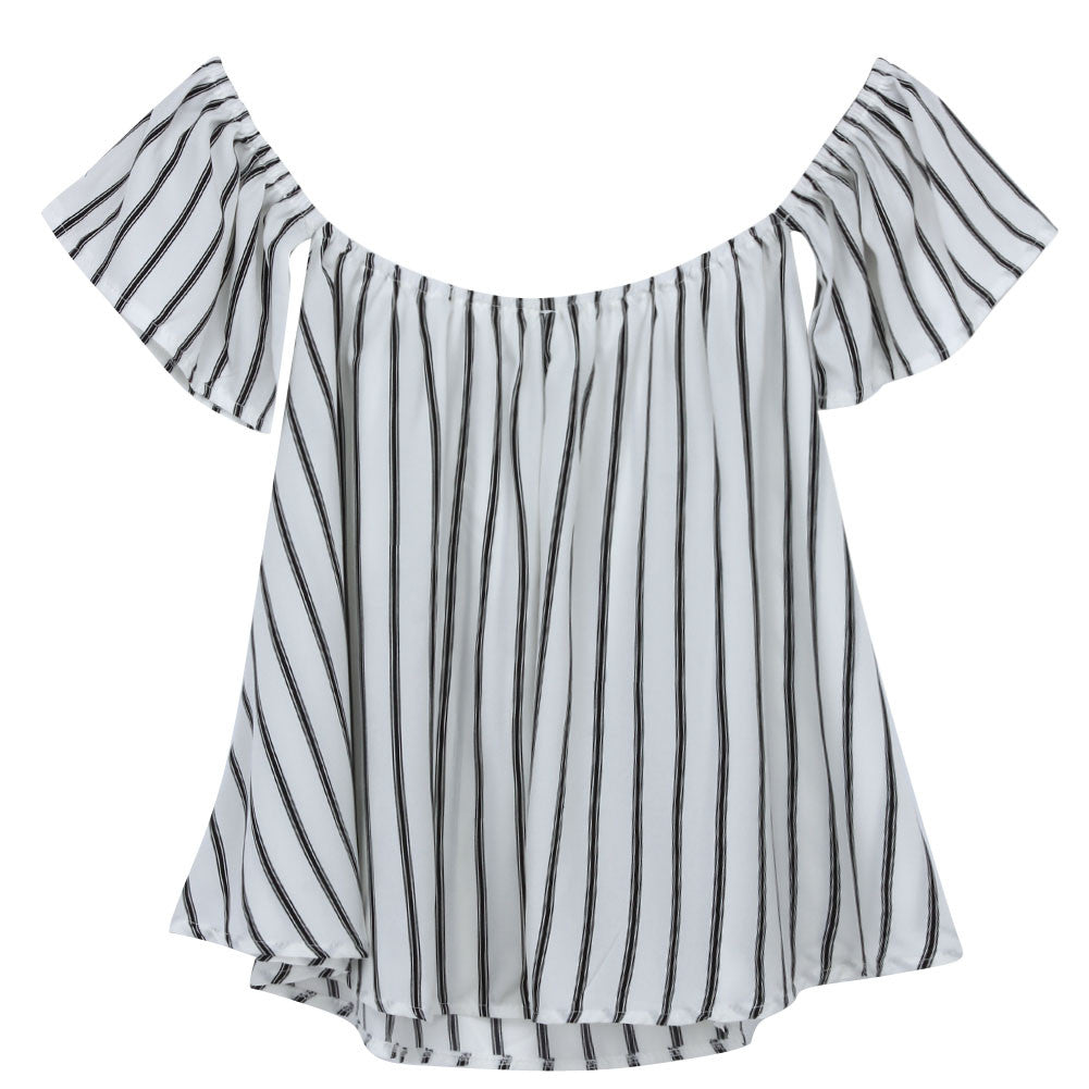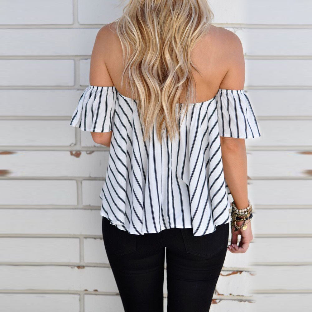 Off Shoulder Stripe Women Tops Casual Slash Neck Blouse Loose Women Shirt Blusas Camisa Femininas Tops 1STL ELY