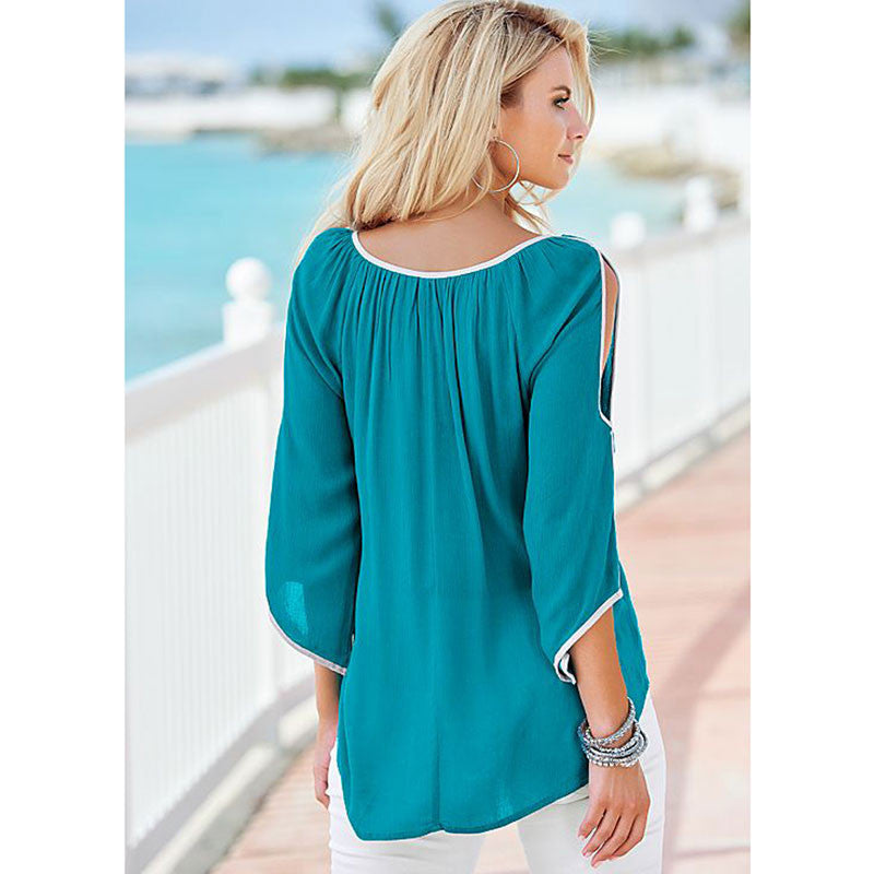 Off Shoulder Top Solid Irregular Blouse Women Tops and Blouses Blusas Women Blouses Blusa Feminino ELY