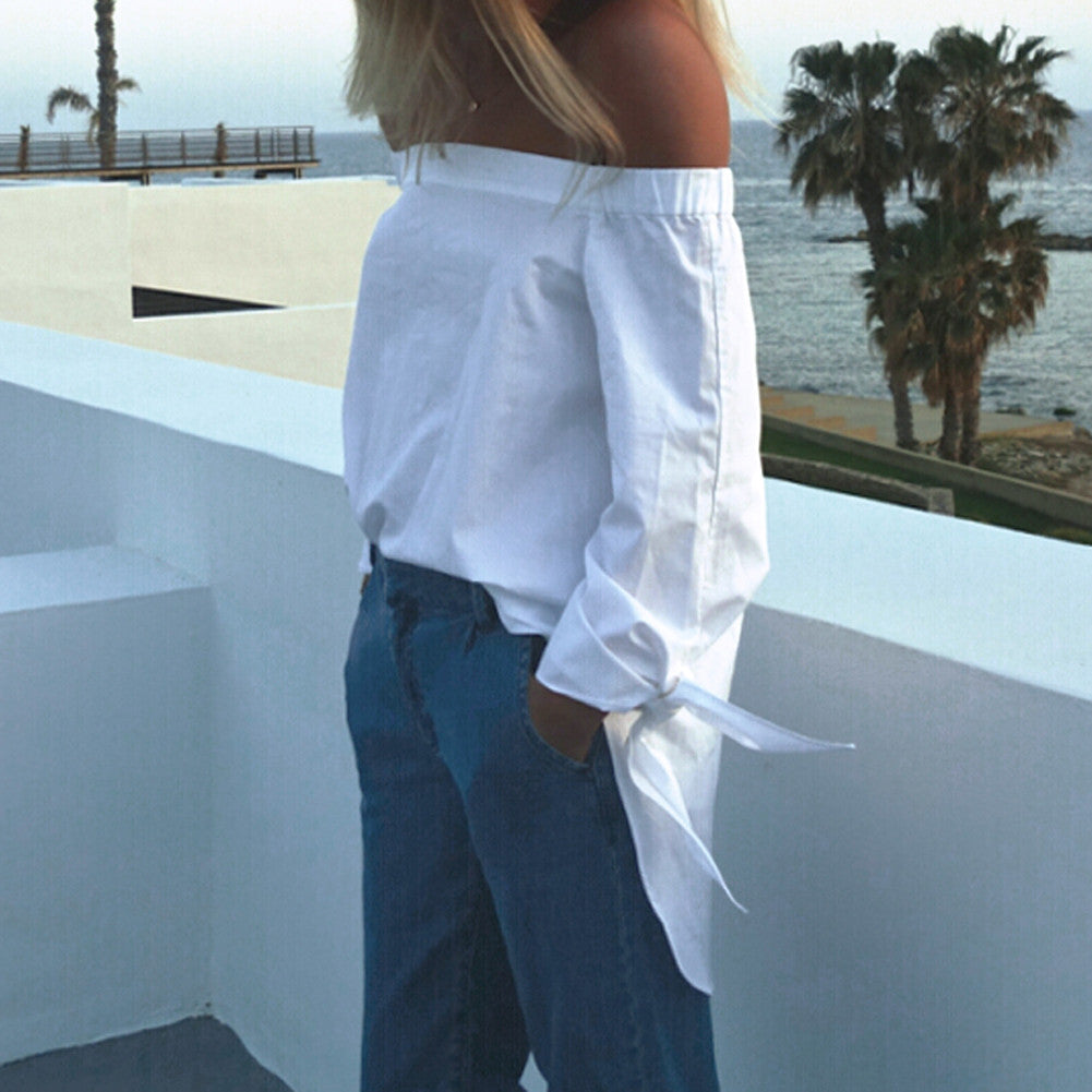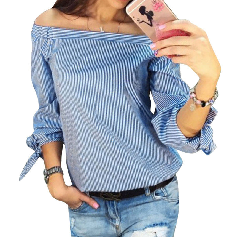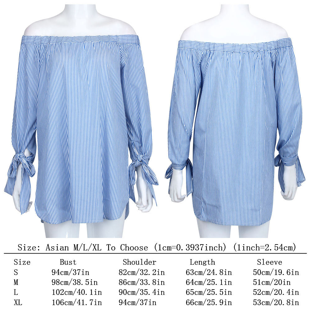 Off Shoulder Women Blouse Casual Slash Neck Blusas Loose Stripe White Cotton Tops Camisa Feminina Women Clothes ELY