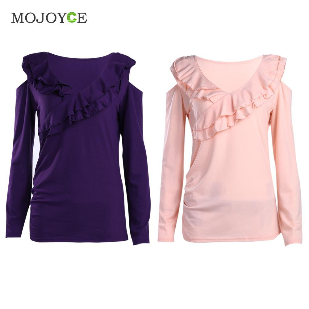 Off the Shoulder Tops for Women Flouncing Strapless Long Sleeve T Shirt Women Blusa Shirt Women Tee Shirt Femme ELY