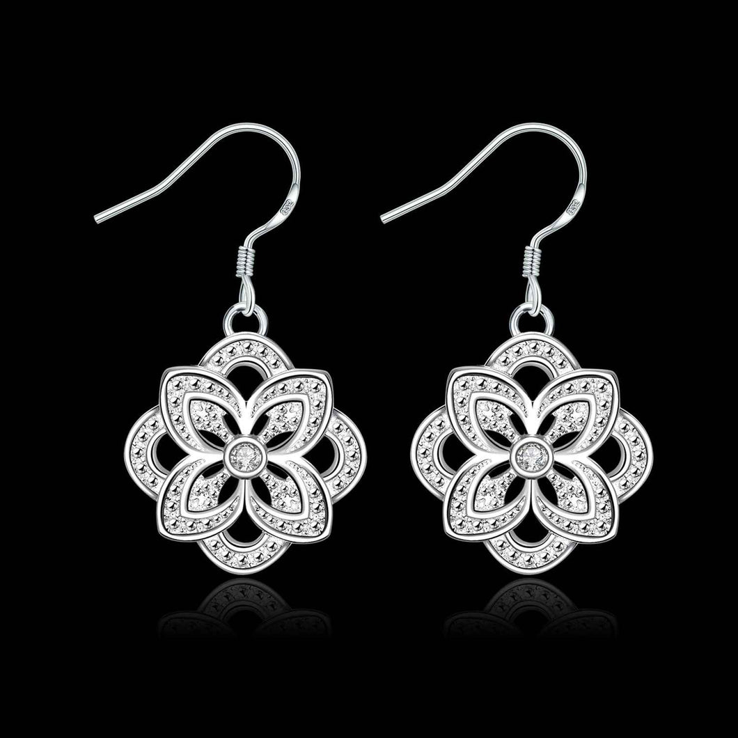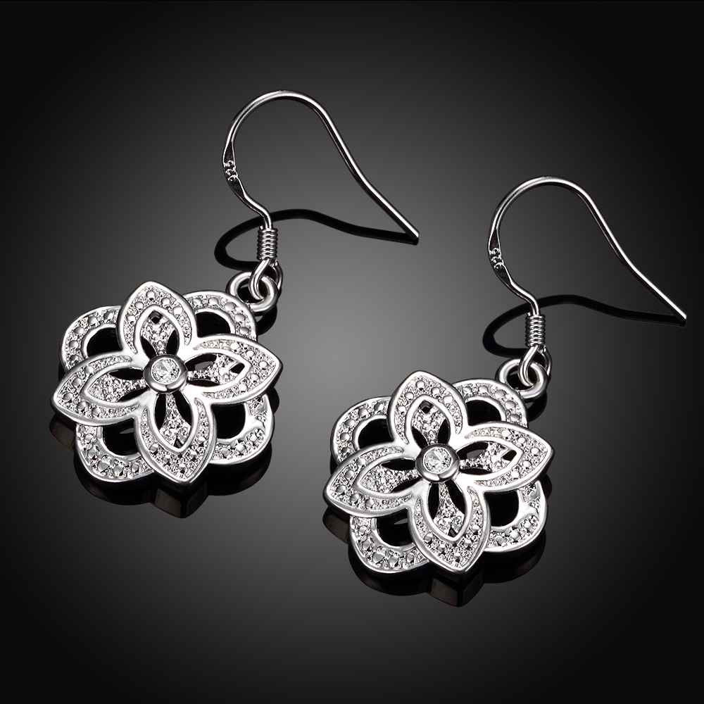 online shopping india silver plated earring Four Leaf flower inlay drop pendientes to us bear men jewelry 2 4 ELY