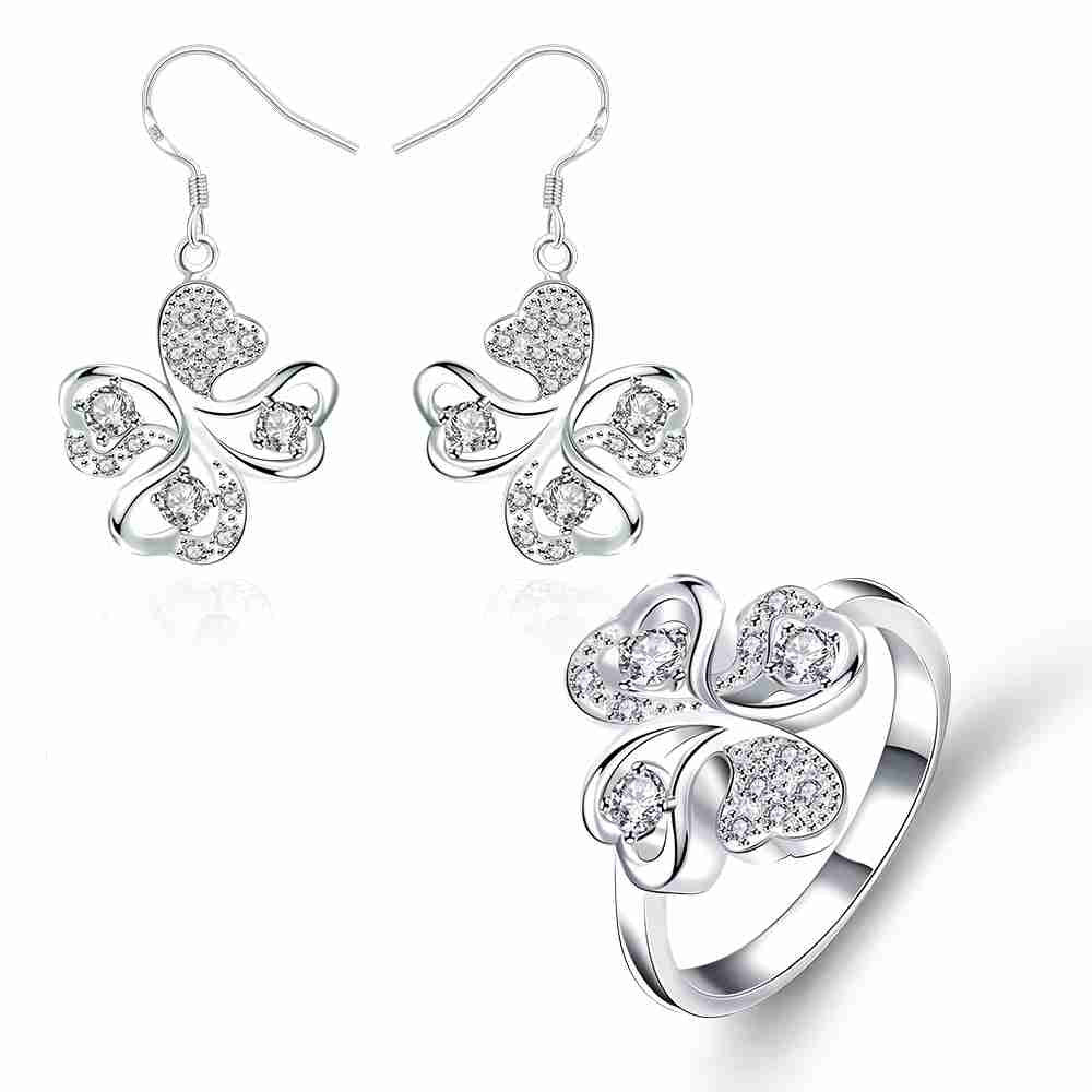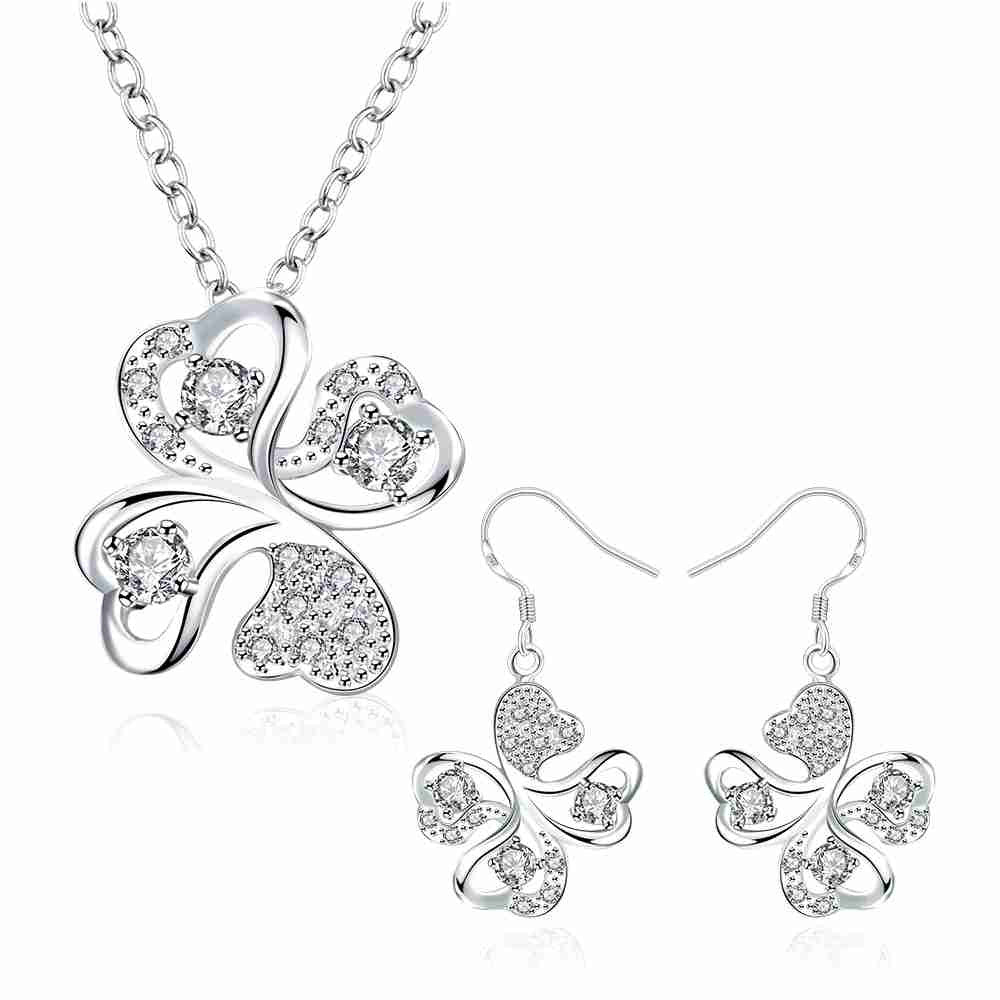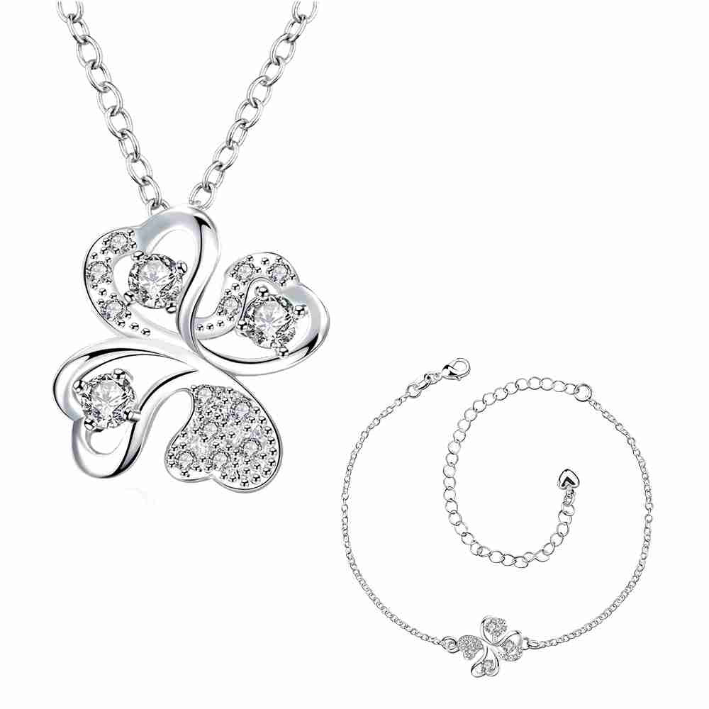 online shopping india silver plated jewelry set Quatrefoil Rhinestone Necklace+Earrings Sets19 ELY