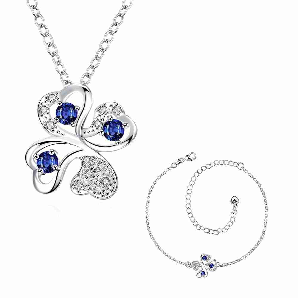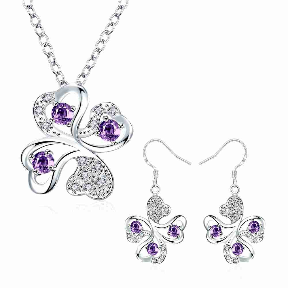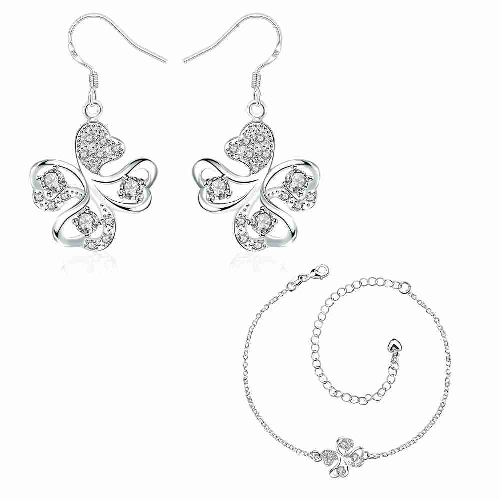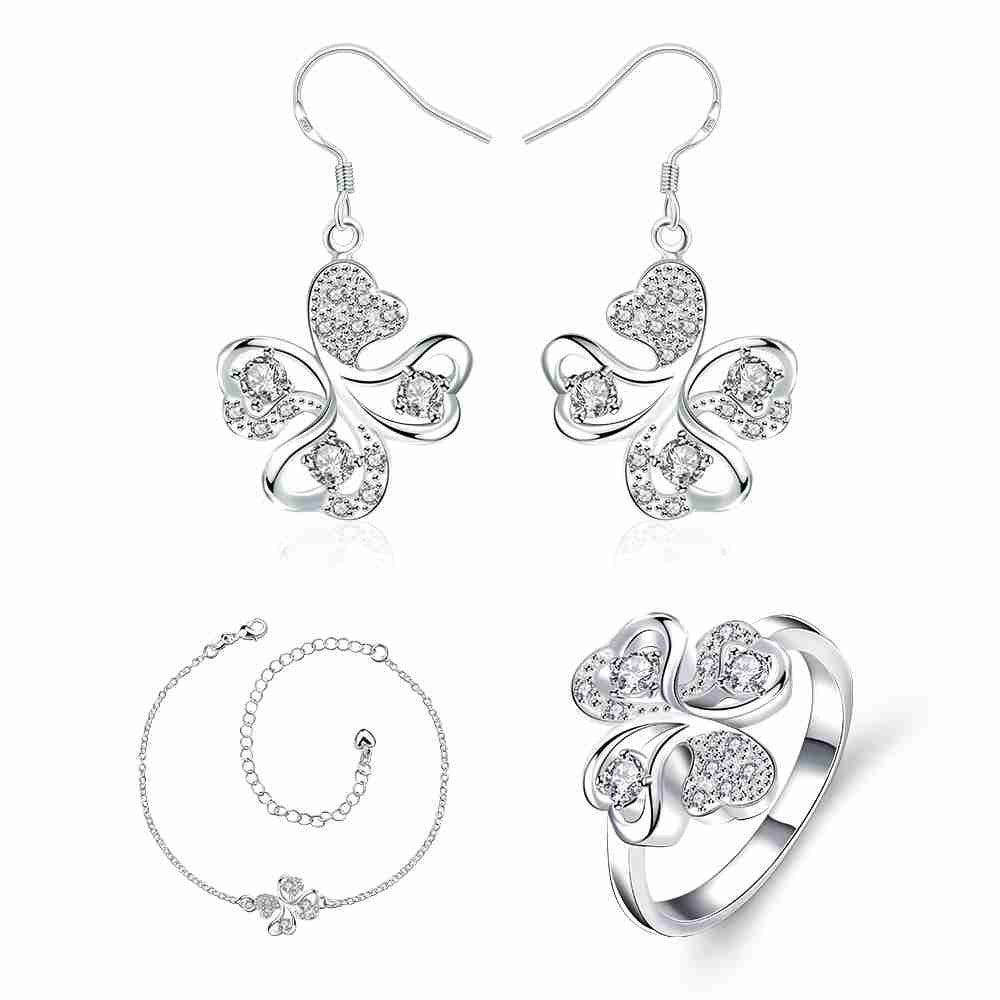 online shopping india silver plated jewelry set Quatrefoil Rhinestone Necklace+Earrings Sets19 ELY