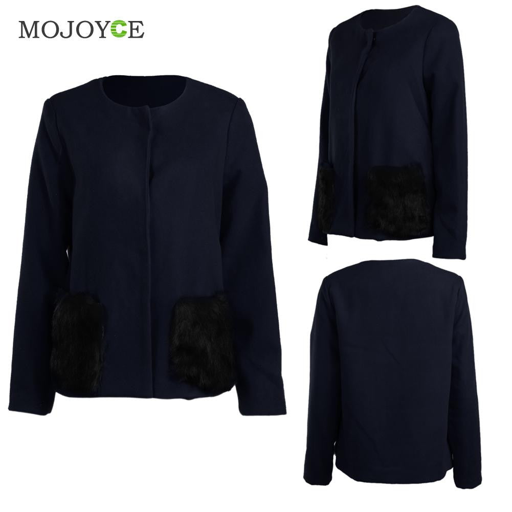 Parka Long Sleeve Coat Women Overcoat Double-faced Woolen Wool Coat Wnter Jacket Women Fur Pocket Decorative ELY