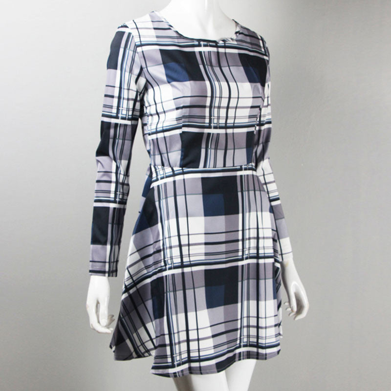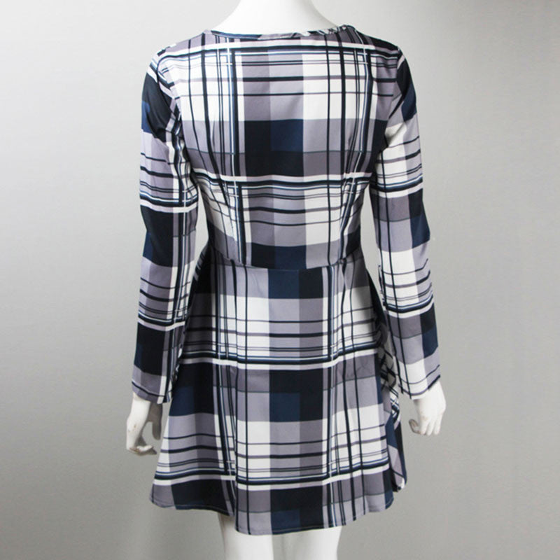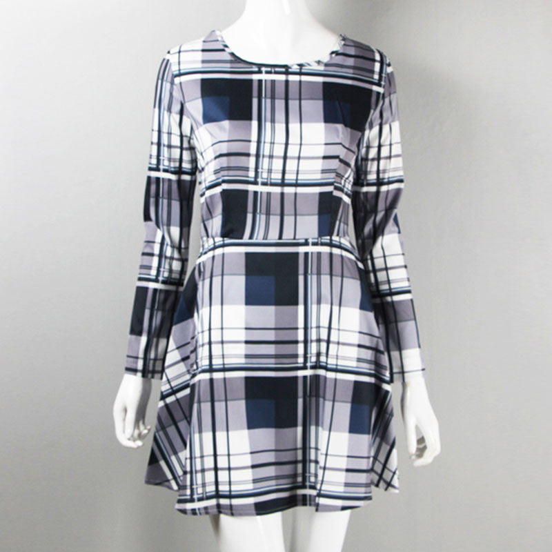 Plaid Women Dress Vestidos Vestido De Renda Plaid Long Sleeve Waisted Dress PU Belt Vestido De Festa ELY