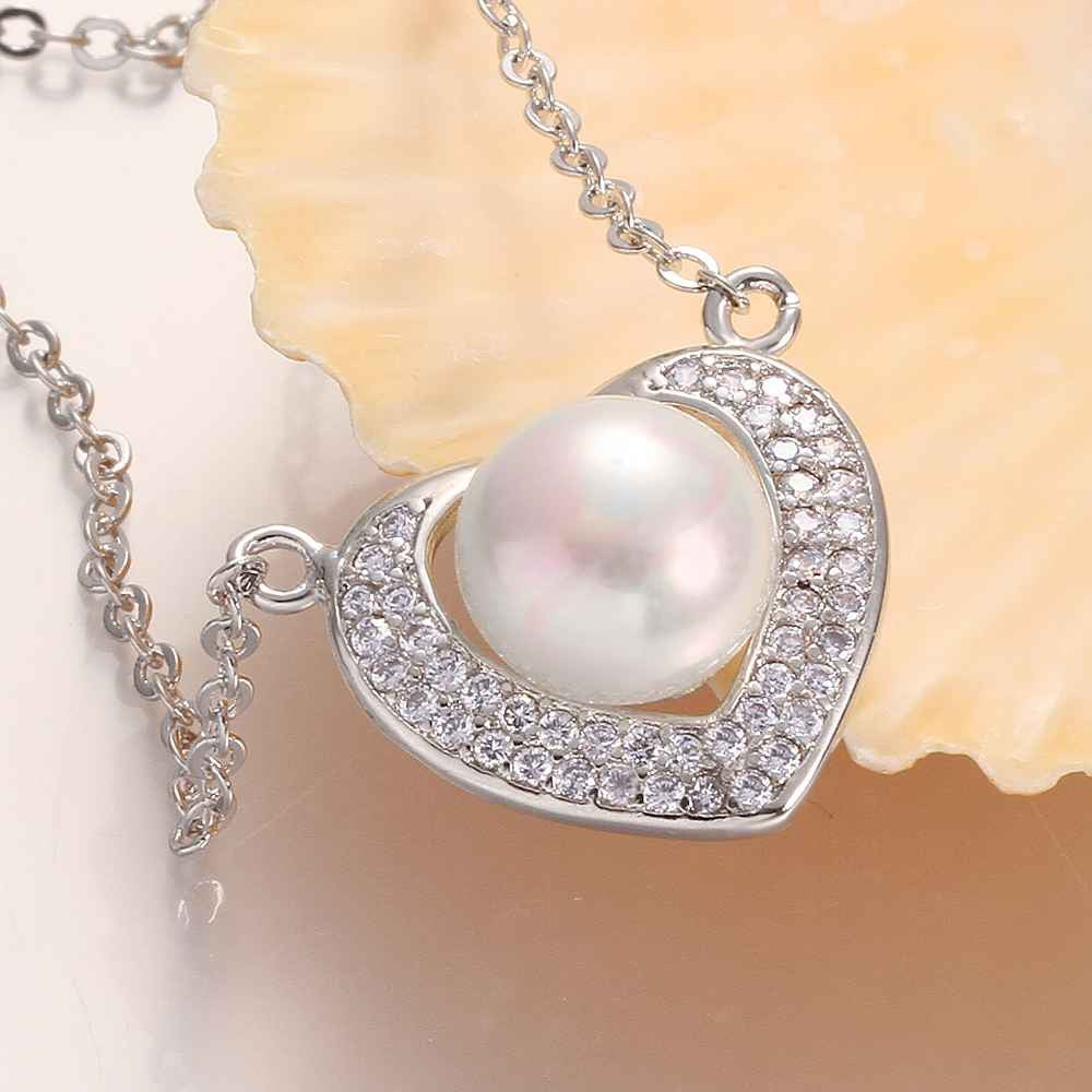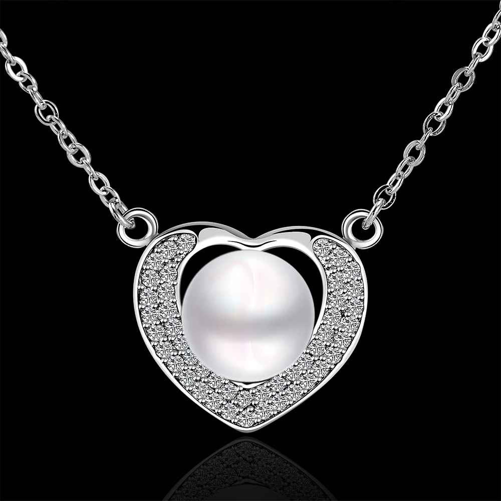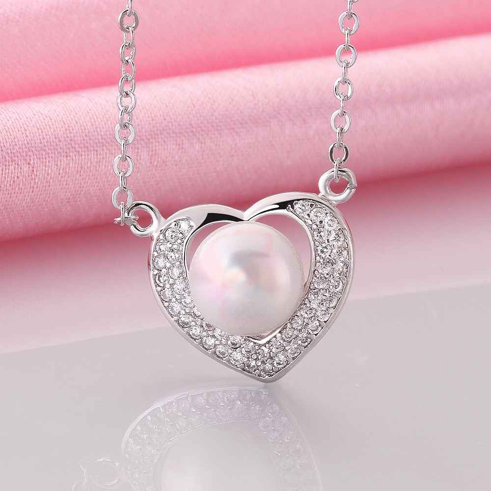 platinum plated necklaces simulated pearl in heart collares women necklaceNPLN 13 ELY