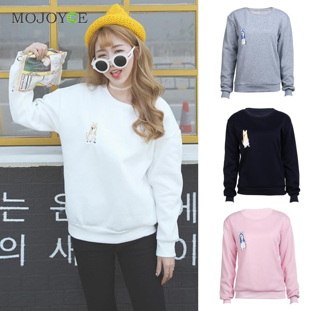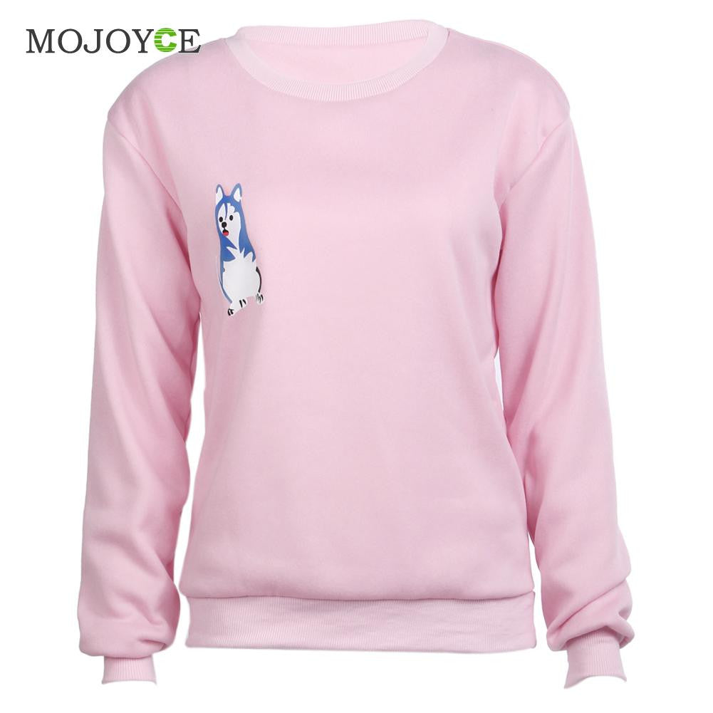 Pullover Hoodies Women Loose Stitching Puppies Kawaii Sweatershirt Hoodies Pink Sweatshirt Women ELY