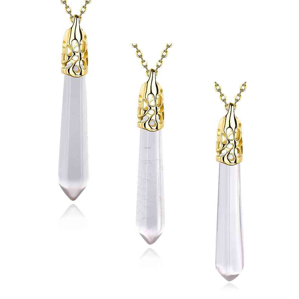 Quartz Crystal pendant necklace Prismatic tip patek Personalized29 ELY