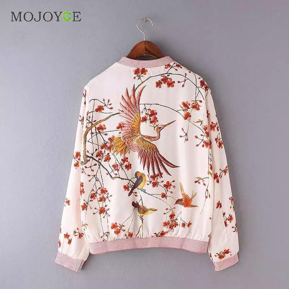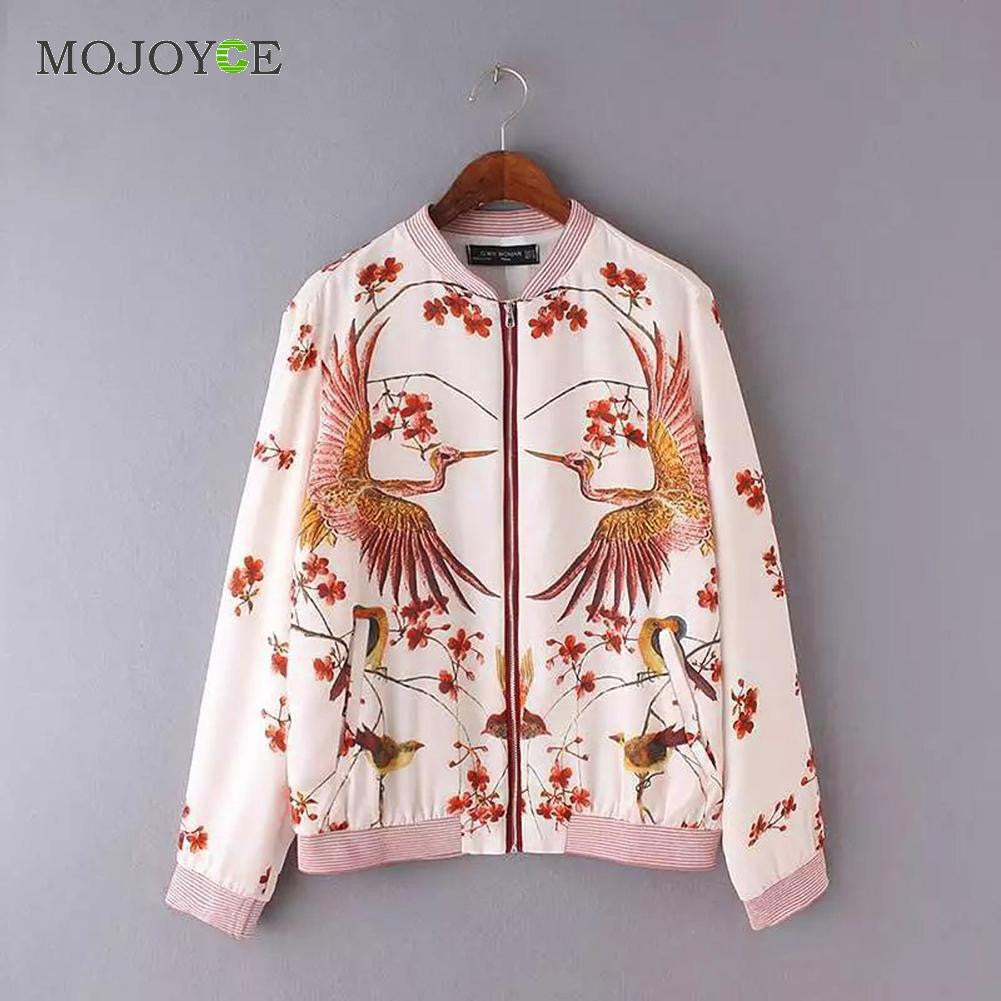 Quilting Jackets Women Floral Print Women Basic Coats Long Sleeve Zipper Women Bomber Jacket Coat ELY