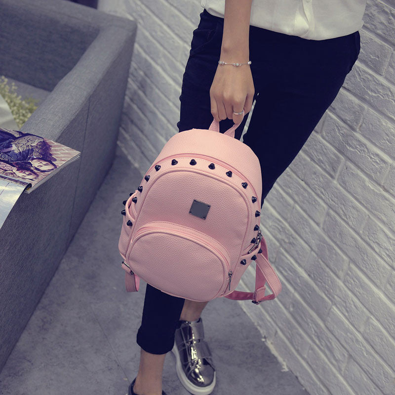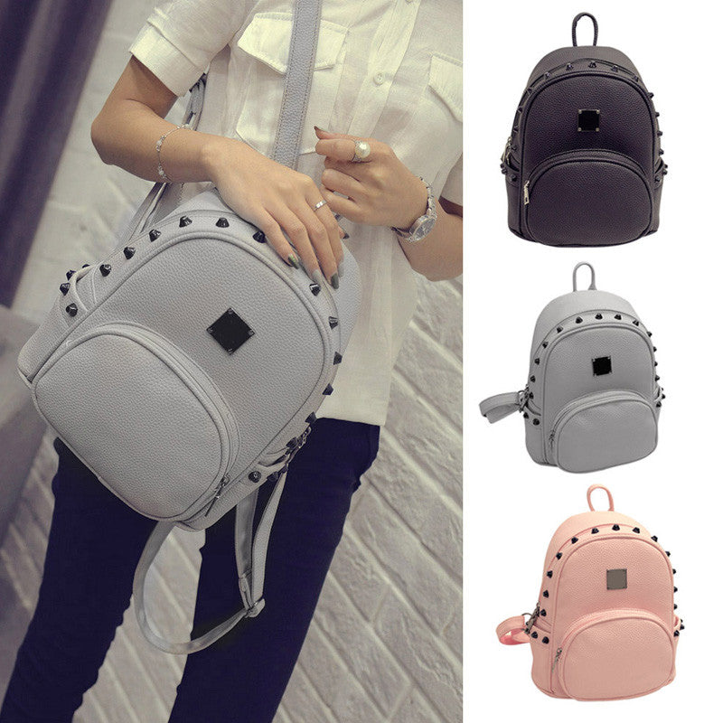 Rivet PU Leather Backpack Women Girl School Backpack Women Travel Small Bag Satchel Rucksack Mochilas Feminina ELY