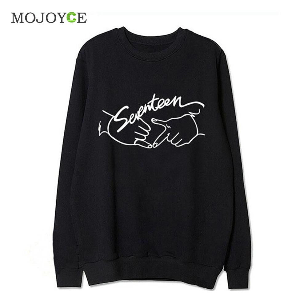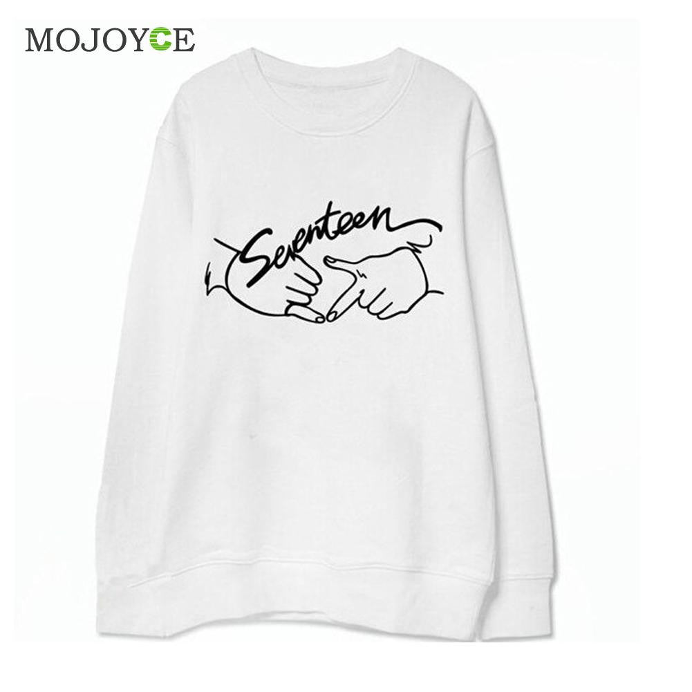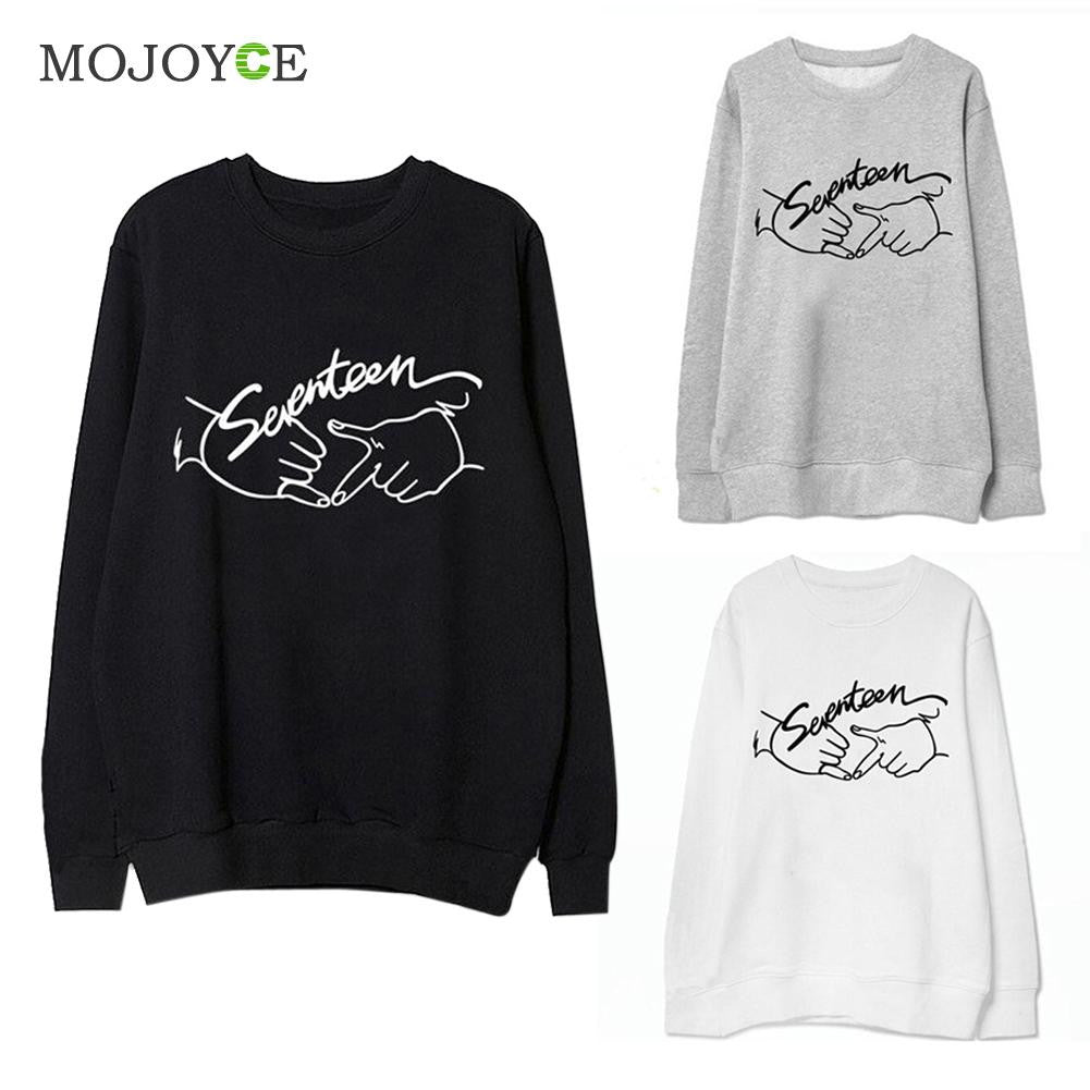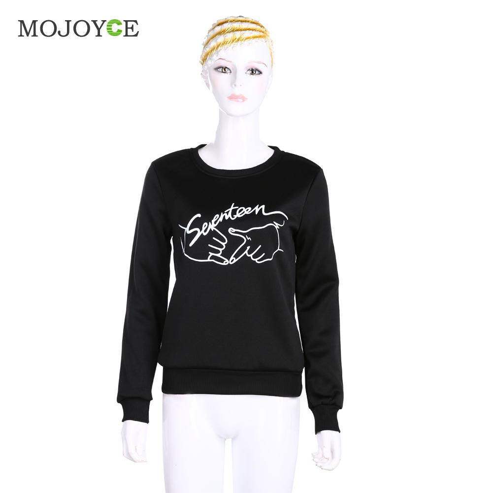 Seventeen Printed Letters Round Neck Long Sleeve Fleece Sweatershirt Hoodies Women Women Tops Blusa ELY