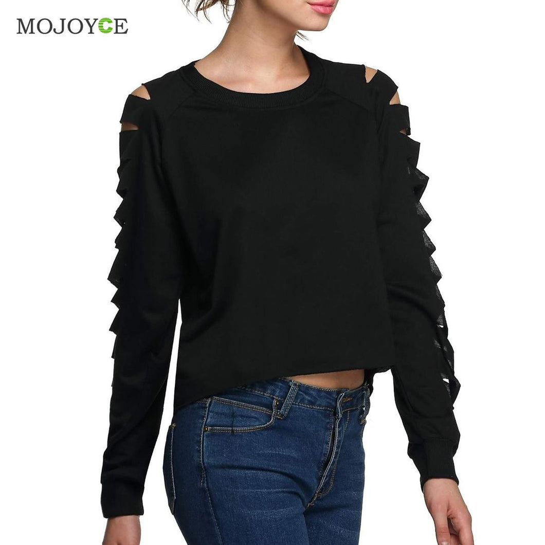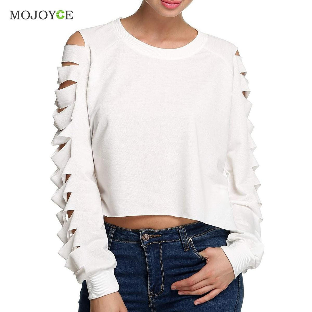 Sexy Cut Out Hole Long Sleeves Women Tops Ripped Night Street Clubwear Women T Shirt Black White Blusa Crop Top Tees ELY