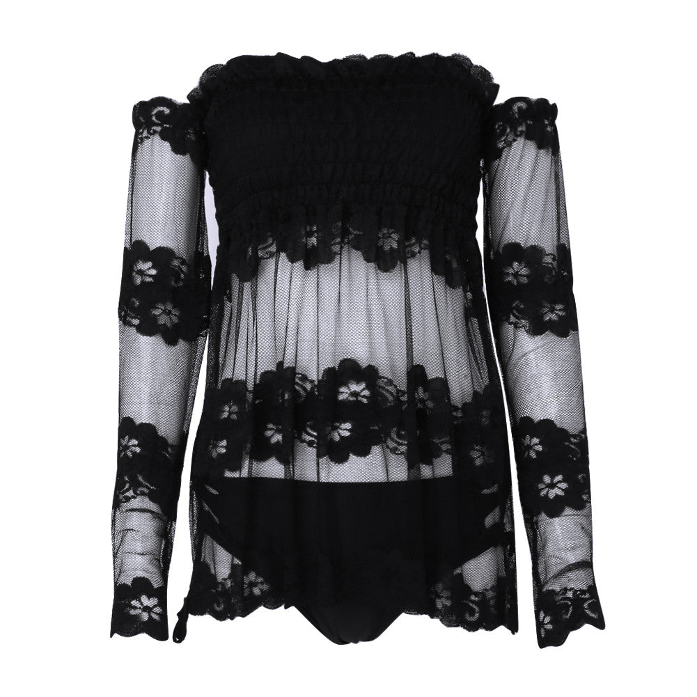 Sexy Off-shoulder Backless Blouse Strapless Slash Neck Blusas Splice Long Sleeve Lace Tops Blusas Femininas Women Blouses 1STL ELY