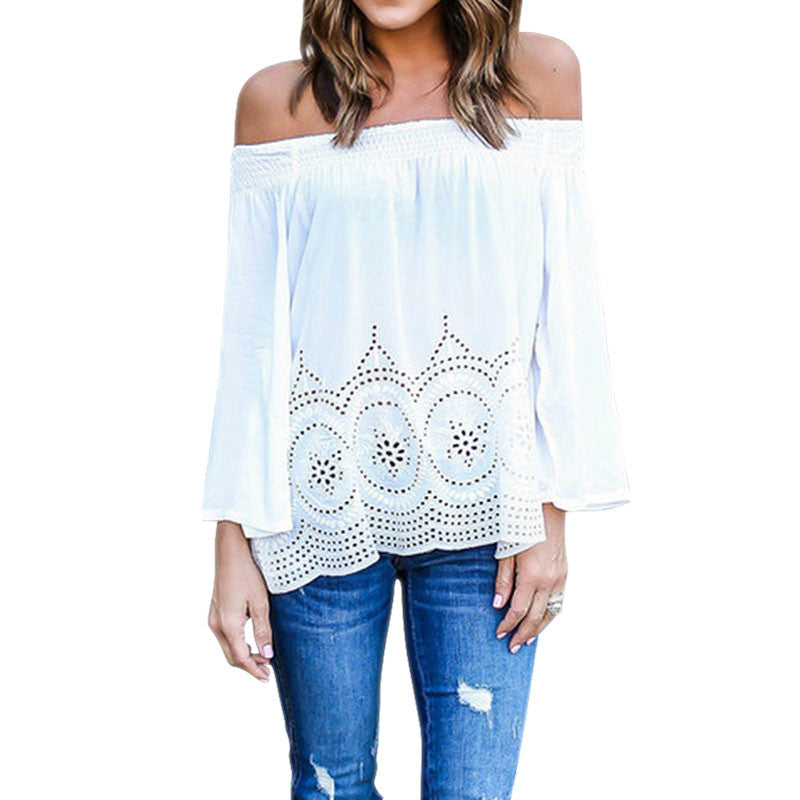 Sexy Off Shoulder Long Women Tops Hollow Out Long Sleeve Shirt Women Women Blouses Blusa Plus Size blusas femininas ELY