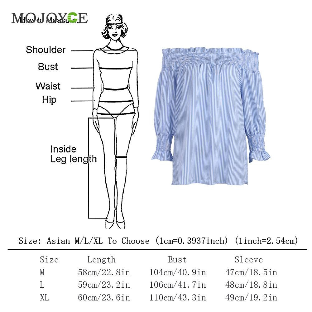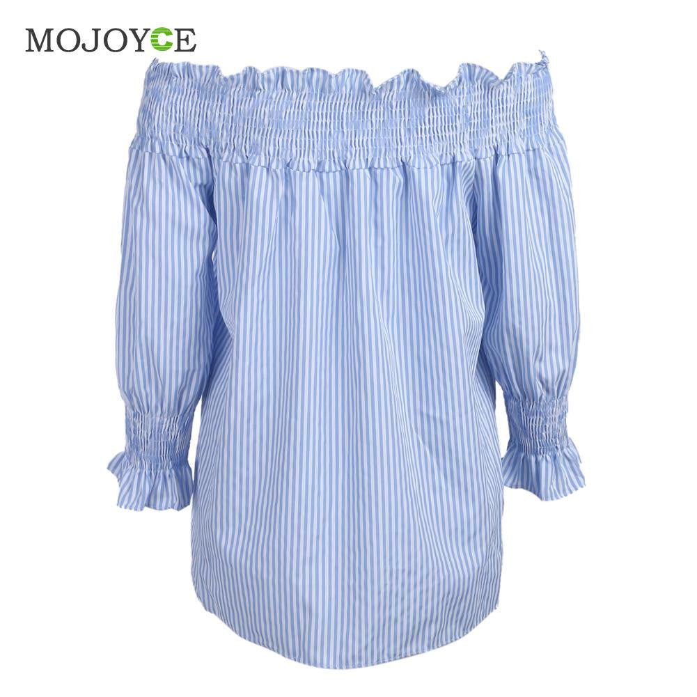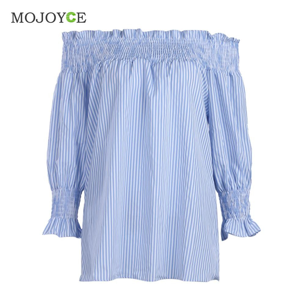 Sexy Off Shoulder Women Blouses Long Sleeve Casual ShirtTops Blusa Shirt Women Blue Stripe Women Tops Blusas Femininas ELY