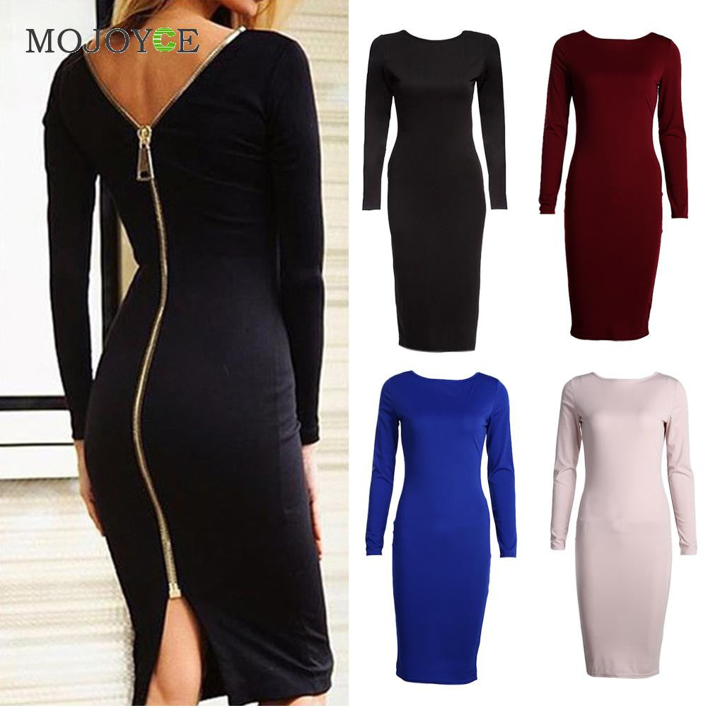 Sexy Stretchy Women Dress Bodycon Dress Vestidos Sheath O-neck Tight Back Zipper Dress Plus Size vestido de festa ELY