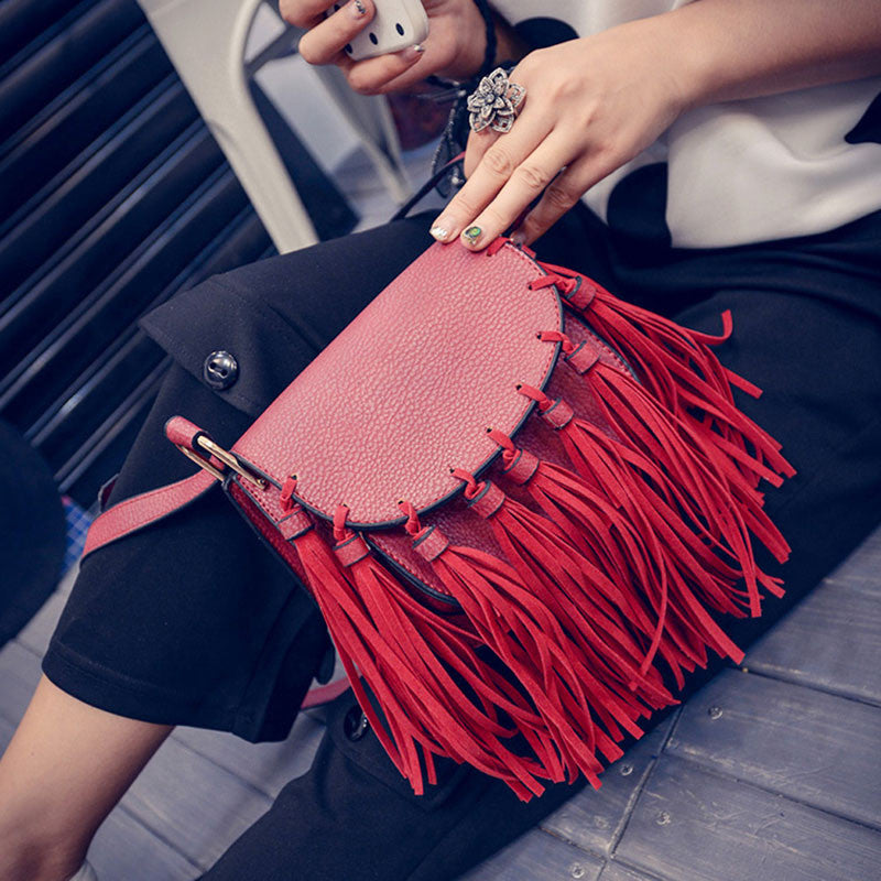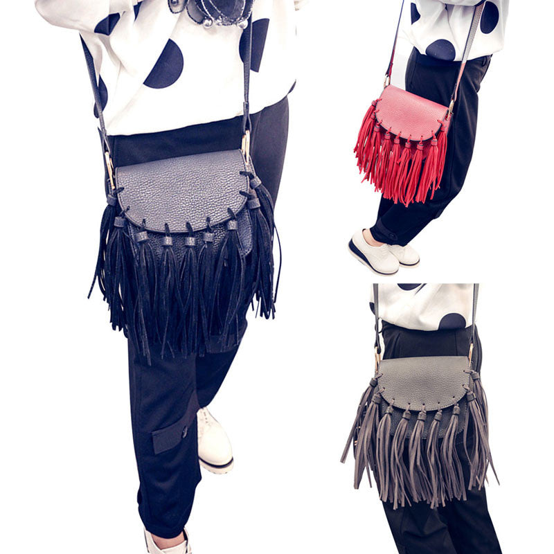 Sexy Women Lady Leather Tassel Shoulder Bag Handbag Crossbody Tote Satchel PU Bags 1STL ELY