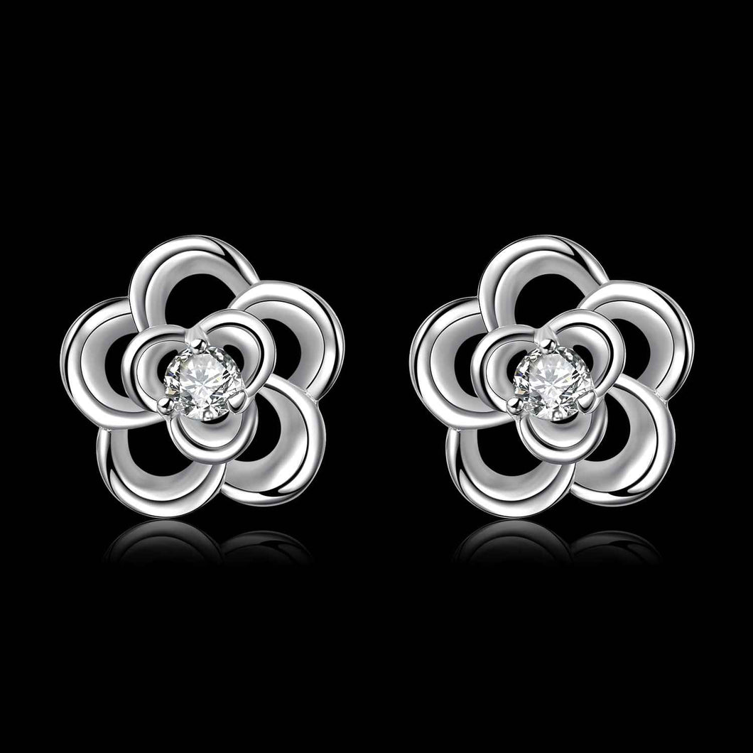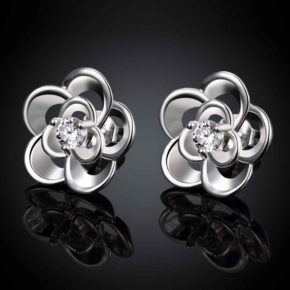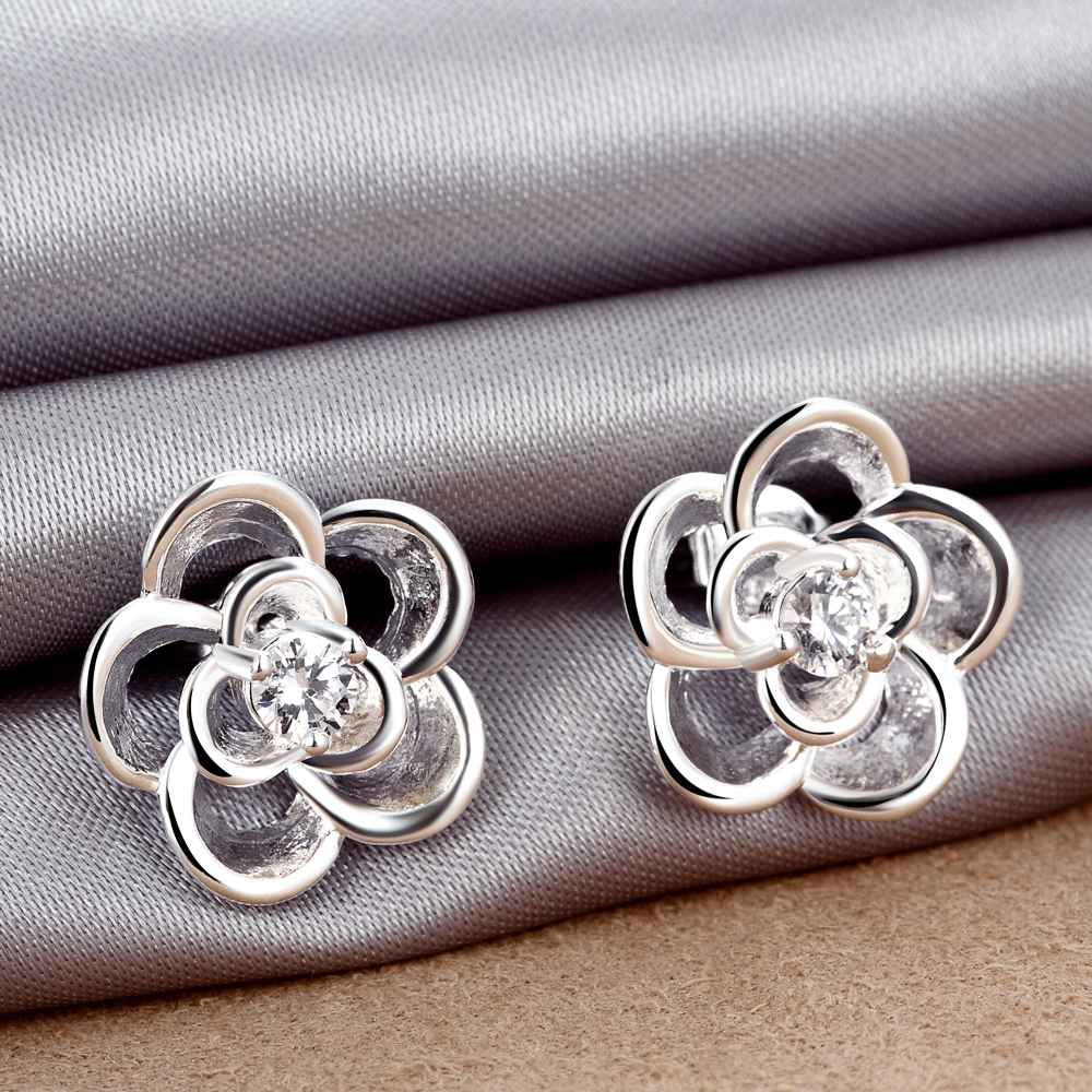 silver 925 earings Hollow double flower stud brinco jewelry ELY