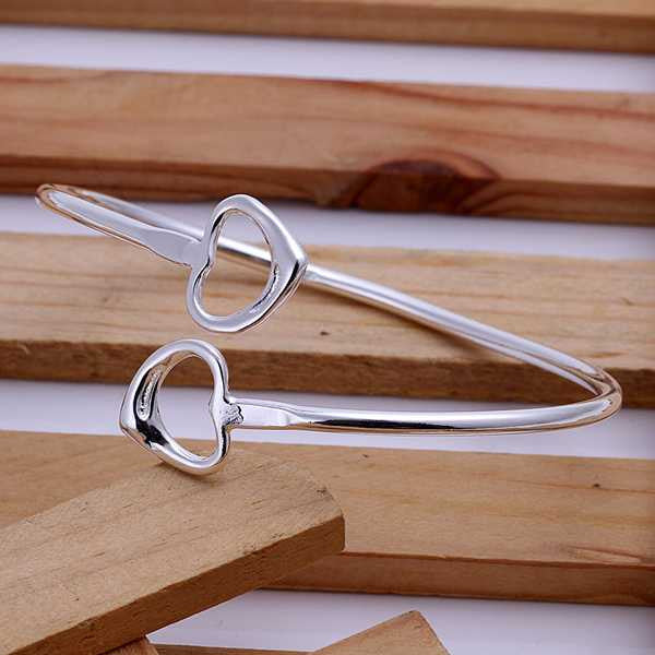 silver charms bangle Double Heart Women Wedding Bracelet diy SMTB 77 ELY