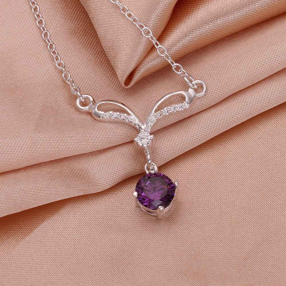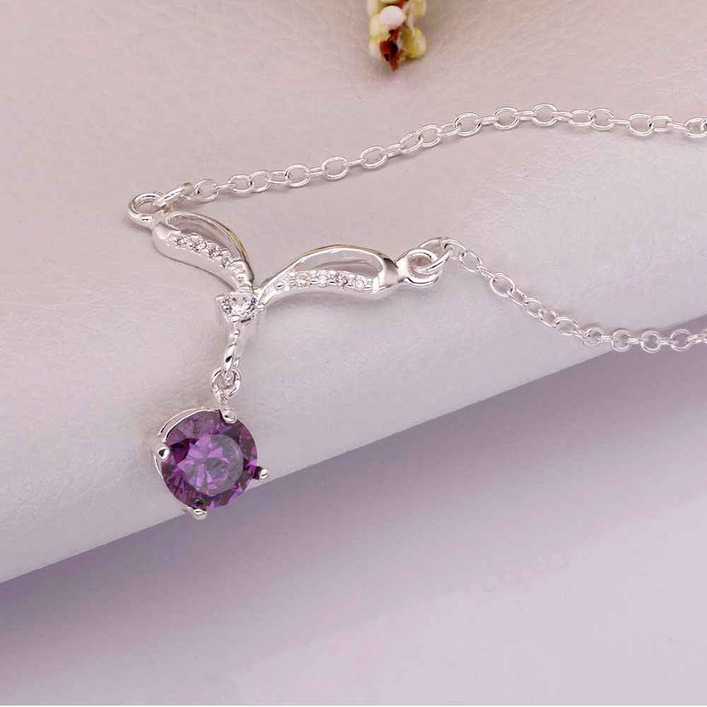 silver collar necklace purple gem collares love 529 ELY