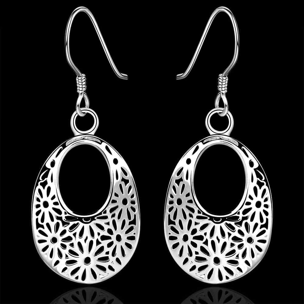 silver earing silver plated jewelry hollow flower earrings 581 ELY
