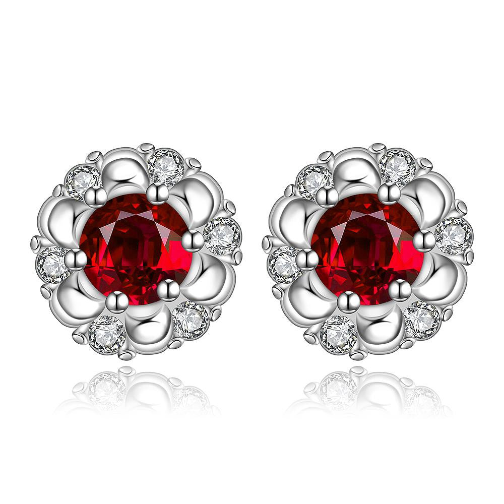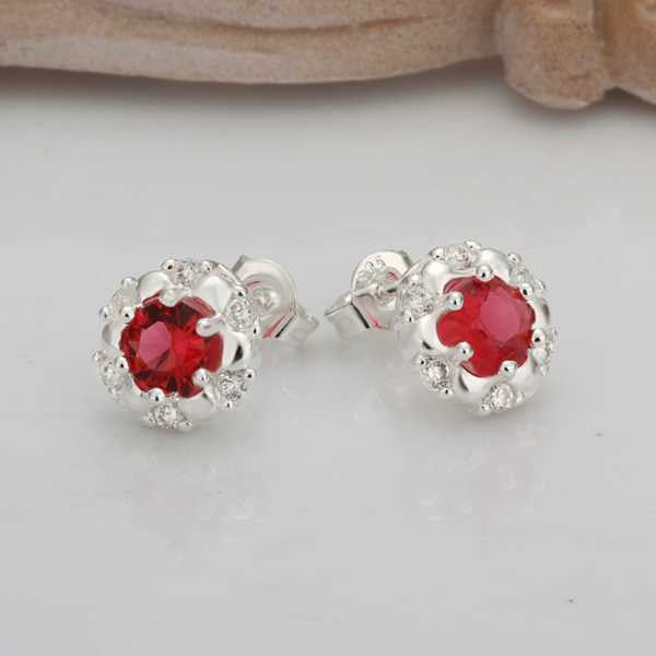 silver earings Red Stone stud cuff wedding jewelry 2 ELY