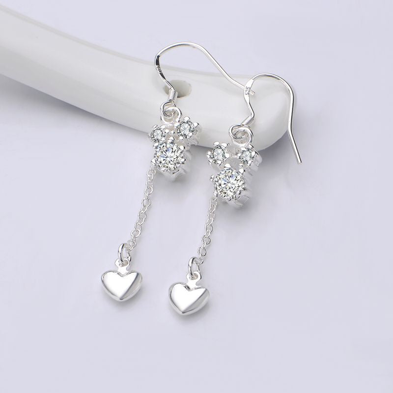 silver earring white stone drop heart drop brincos de festa joyas 14 ELY