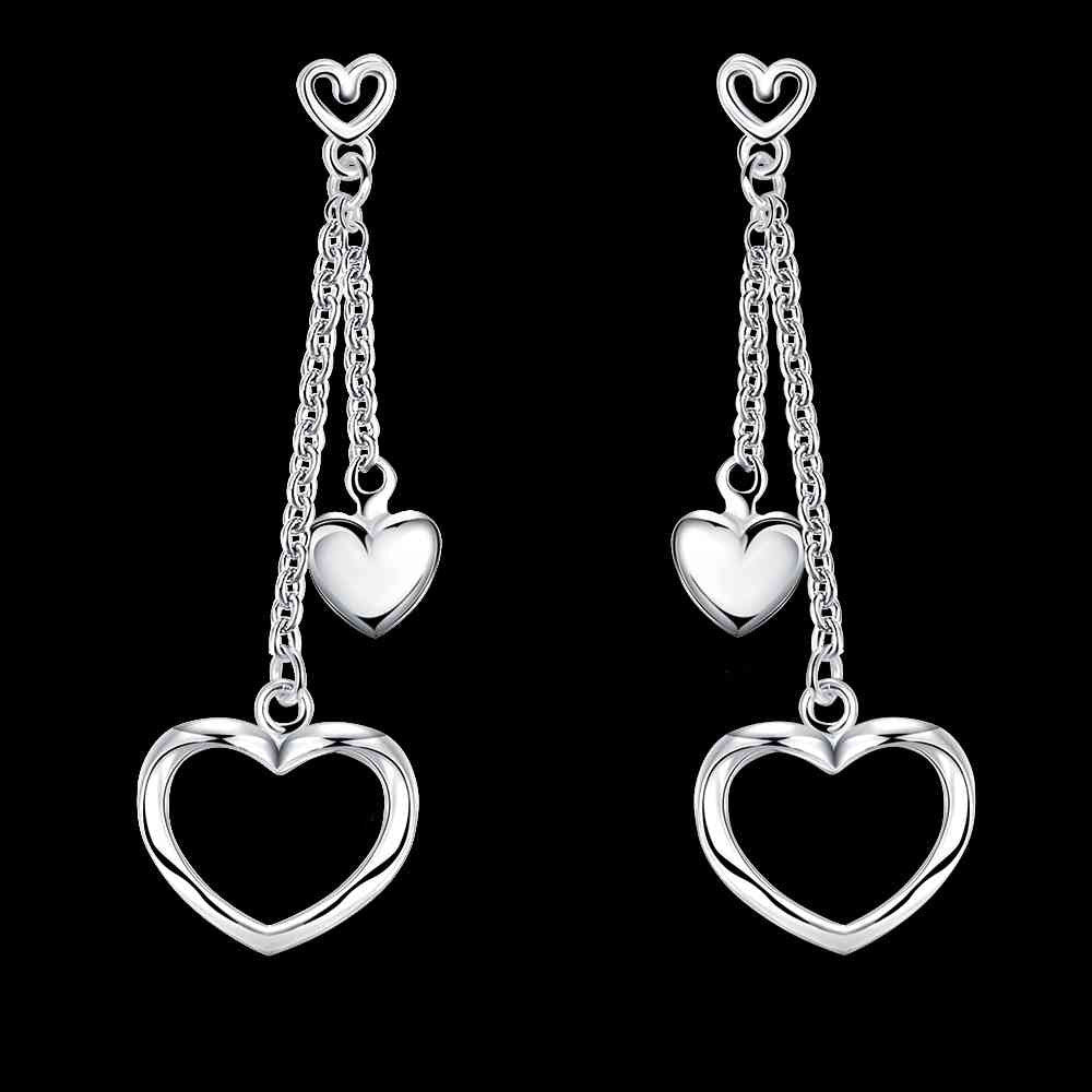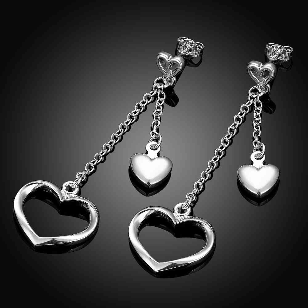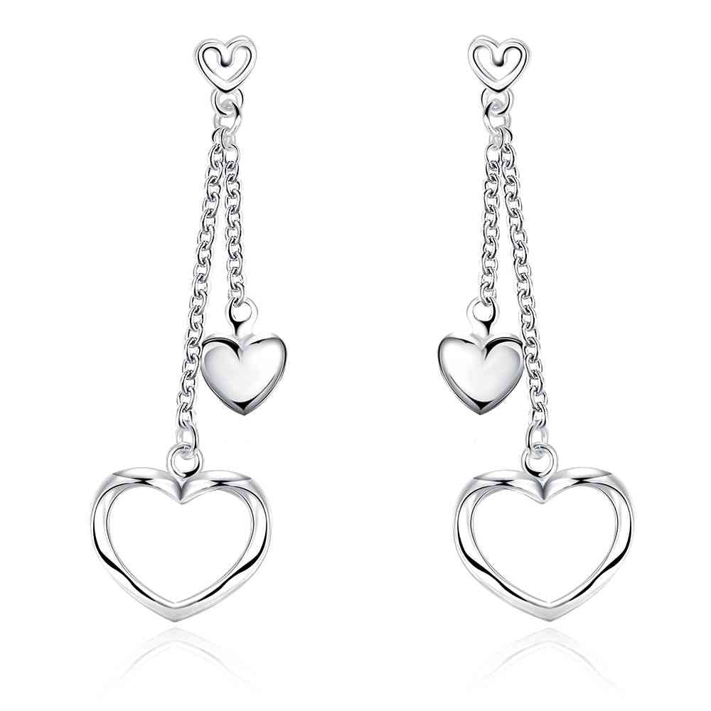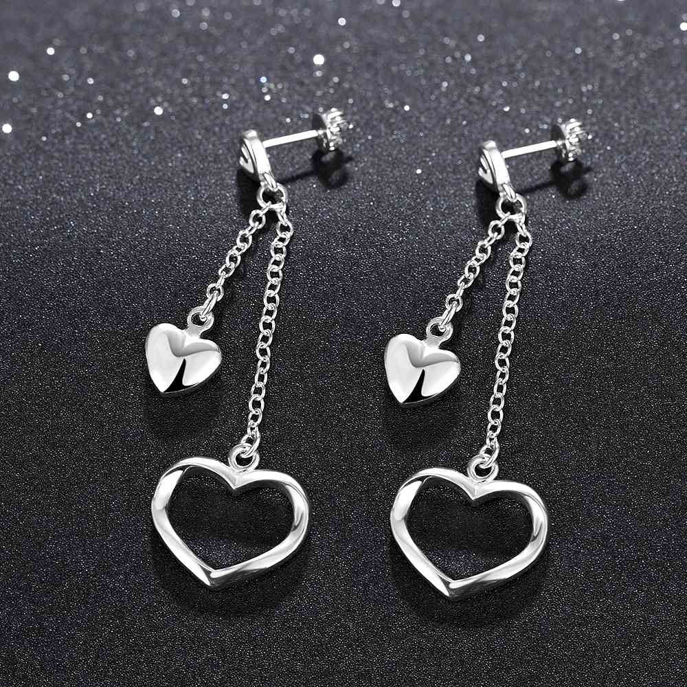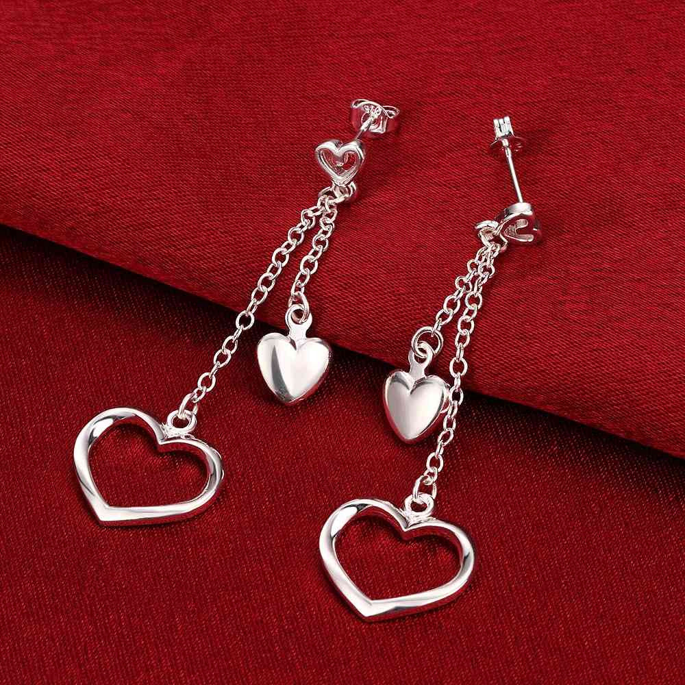 silver earrings Hollow double heart drop cuff charm 651 ELY