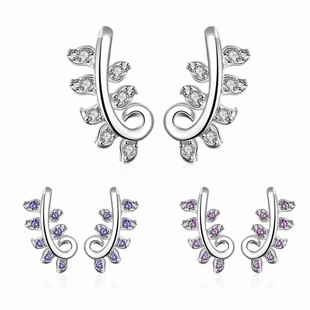 silver earrings Willow leaf crystal stud brincos jewelry 392 ELY