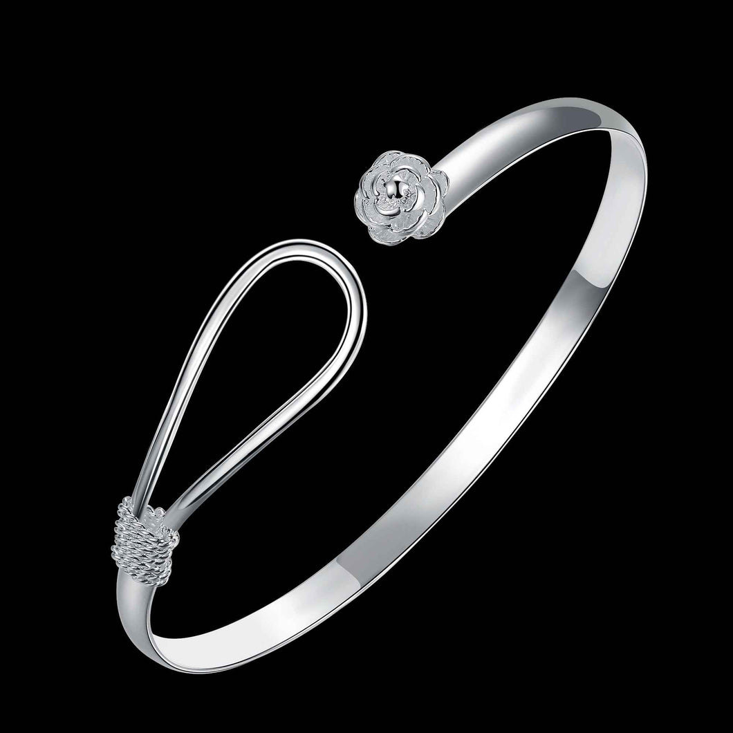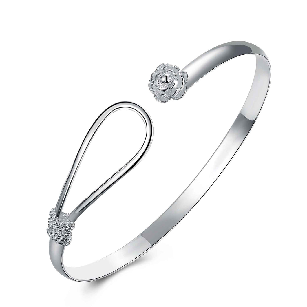 silver friendship bangle Flower singlet buckle women pulseras Personalized SMTB179 ELY