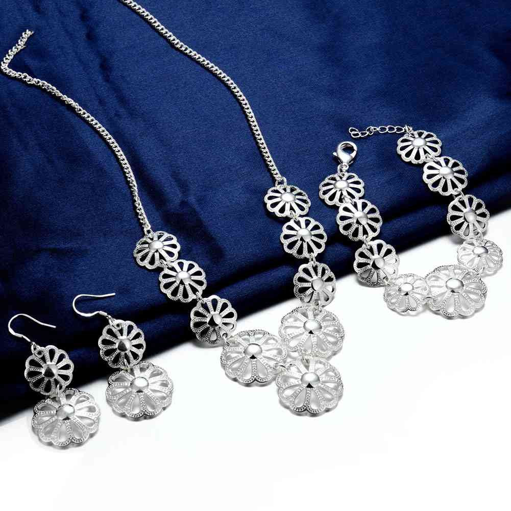 silver jewelry set flower necklace earrings bracelet Sets joias 63 ELY