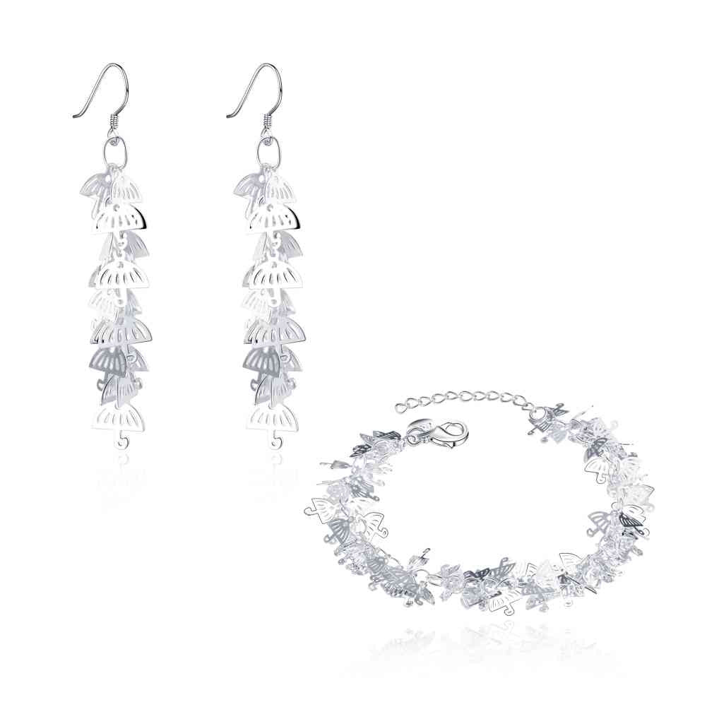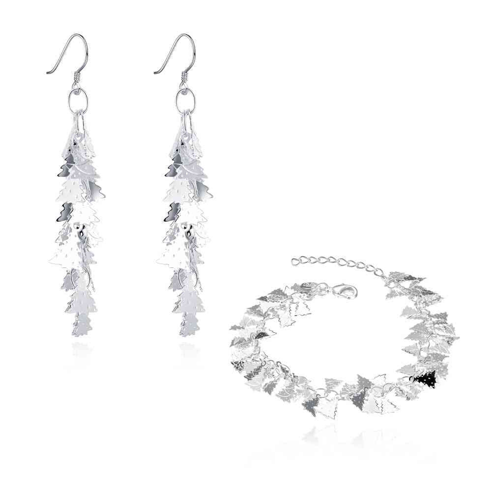 silver jewelry set Leaf earrings + bracelet Sets sport 67 ELY