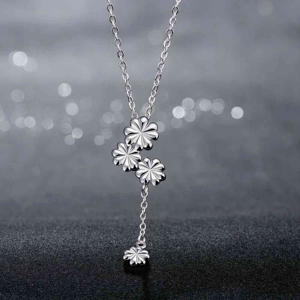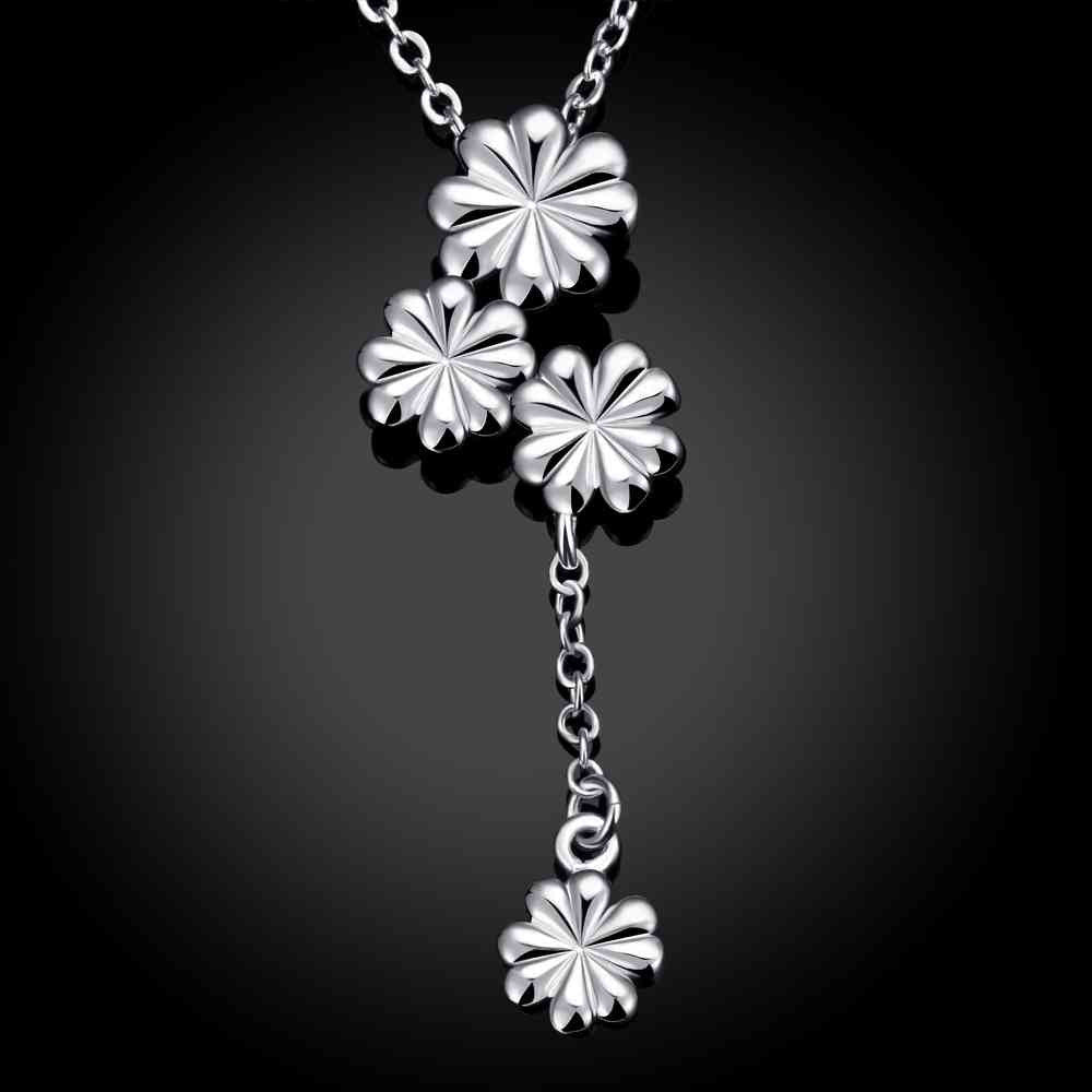 silver pendant necklace Three with flowers colar jewerly accessories 733 ELY